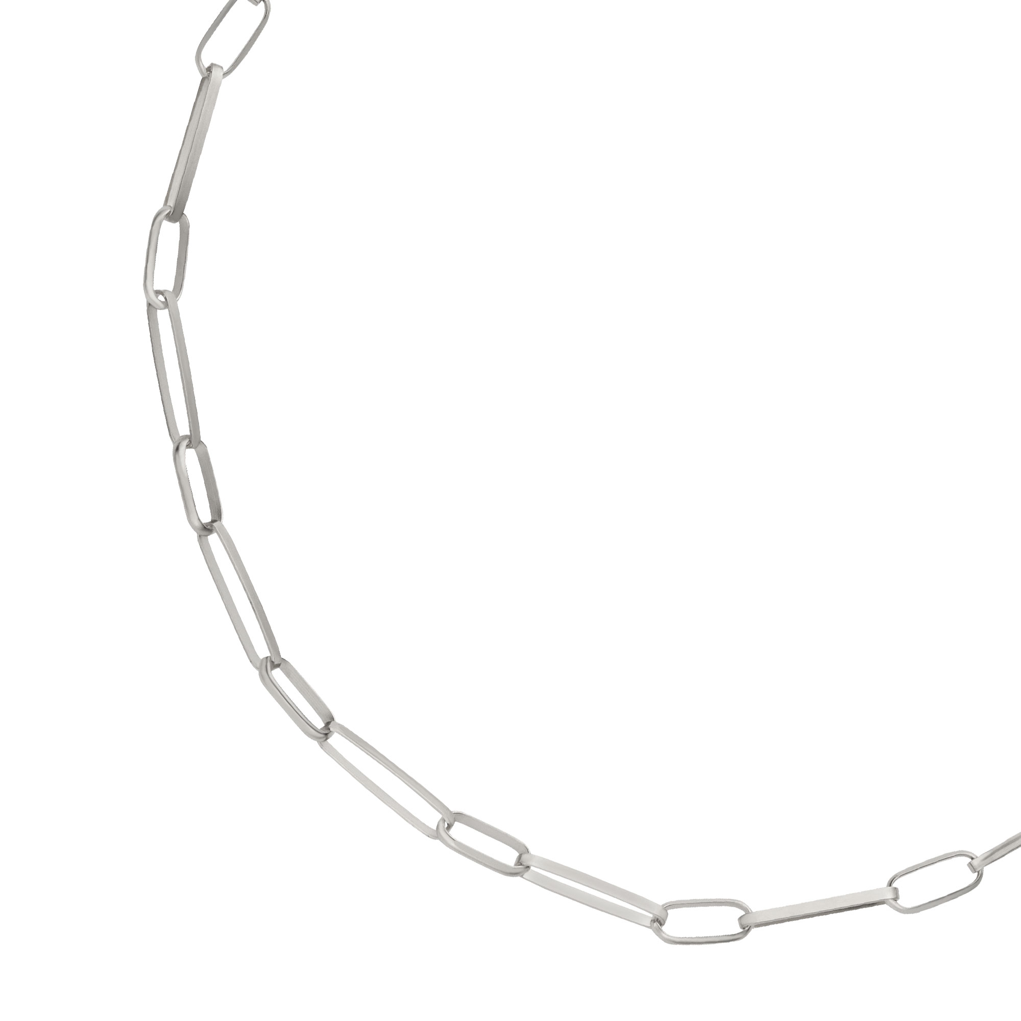短いコマと長いコマを交互に組み合わせたチェーンは、シンプルでありながら程よい存在感を感じられ、コーディネートに華やかさをプラスします。