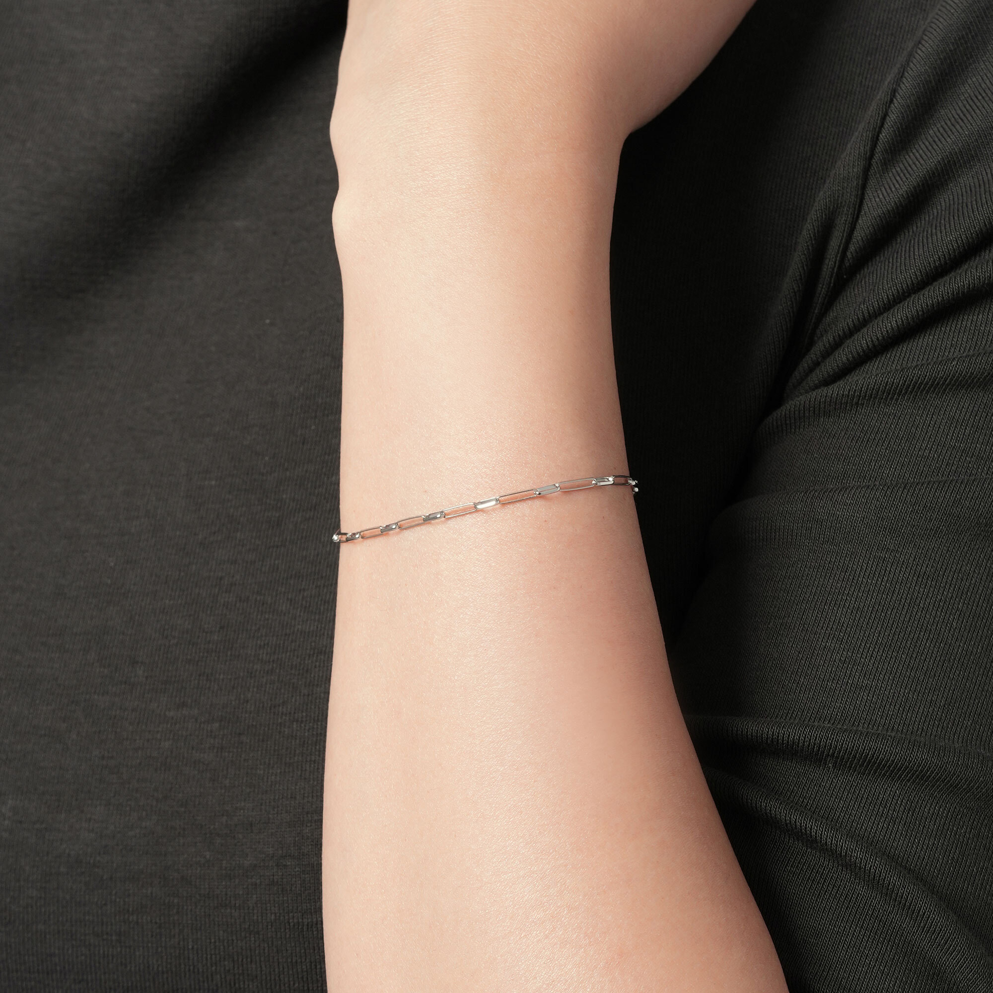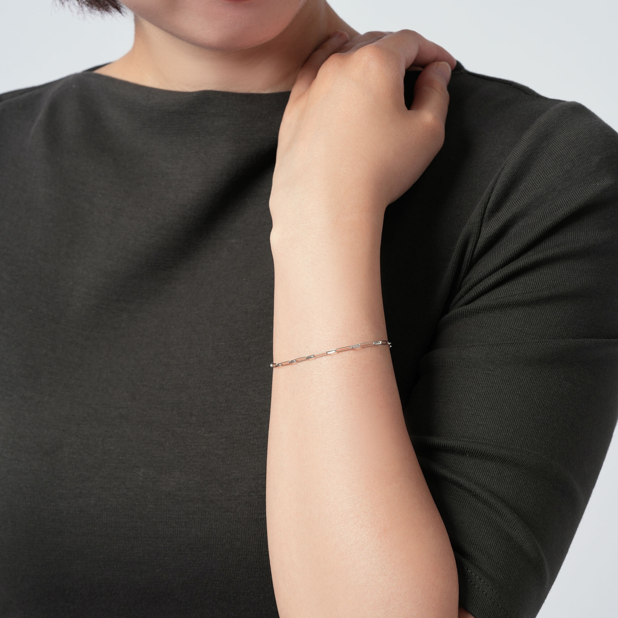 デザイン性のあるチェーンが手元にエレガントな輝きをまとわせるブレスレット。