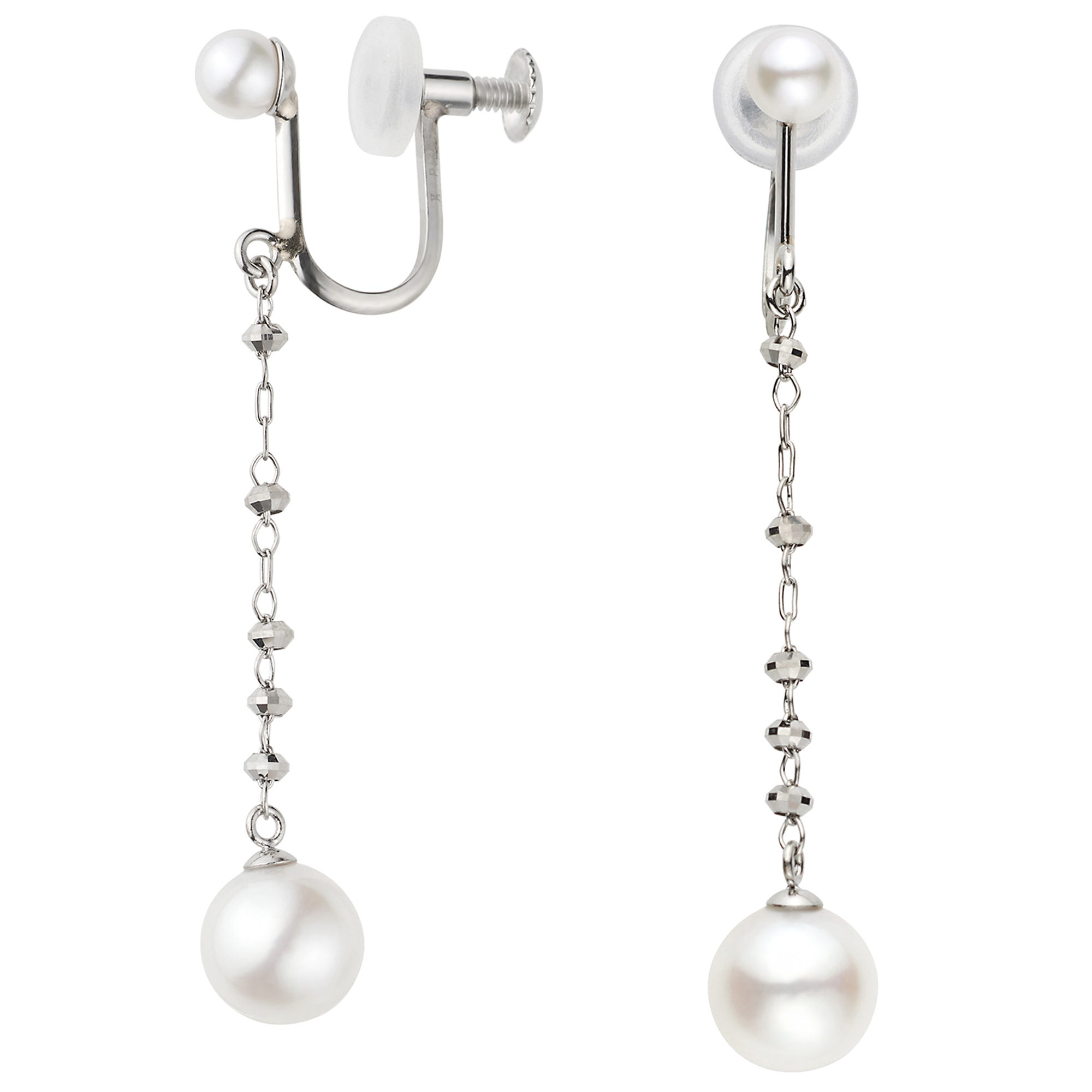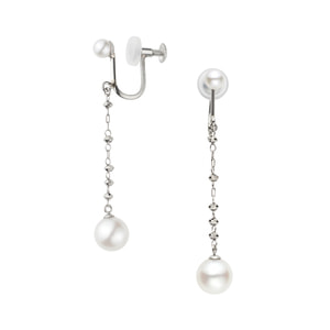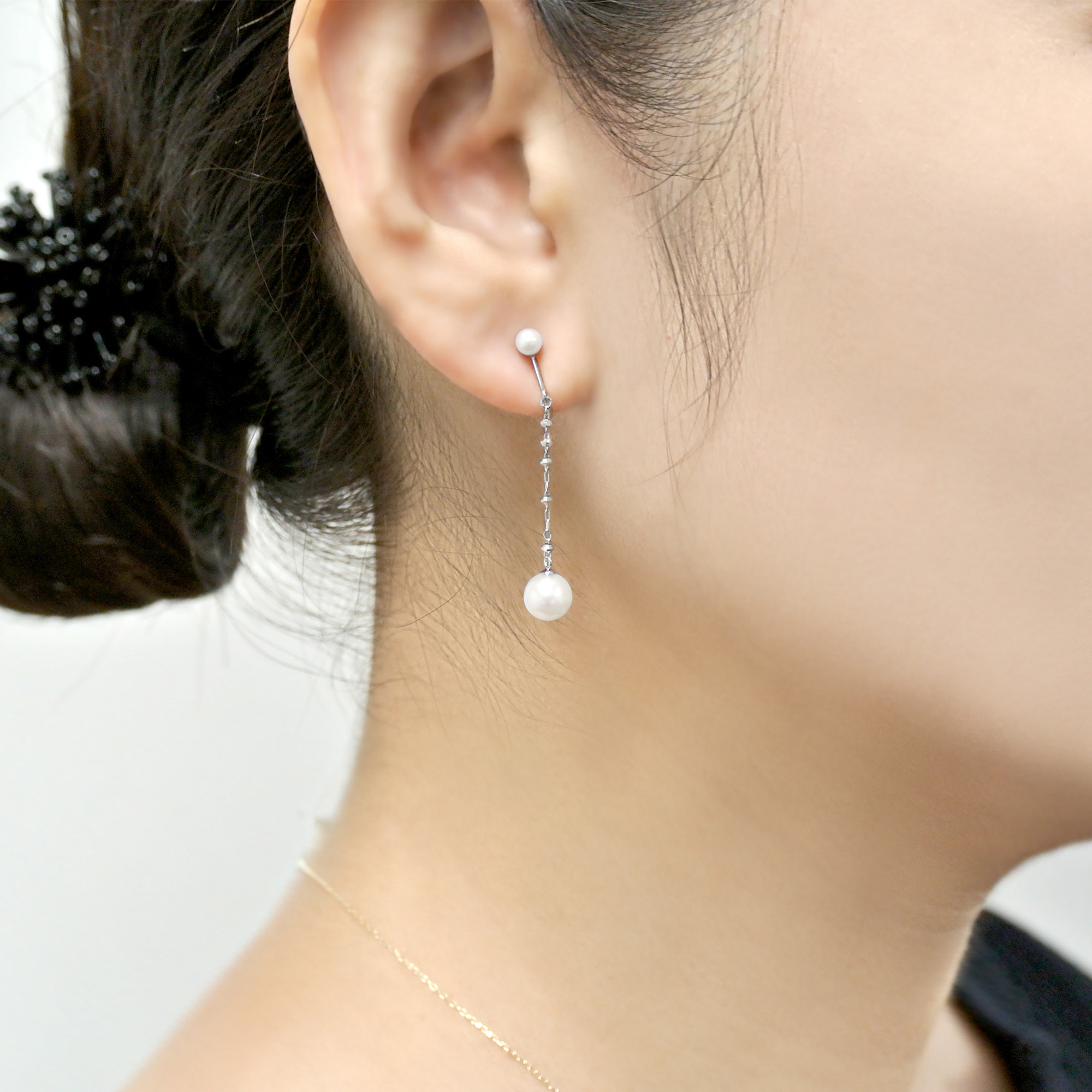 アコヤパールのやわらかい輝きと、凛としたプラチナとのコントラストが美しいエレガントなイヤリング。