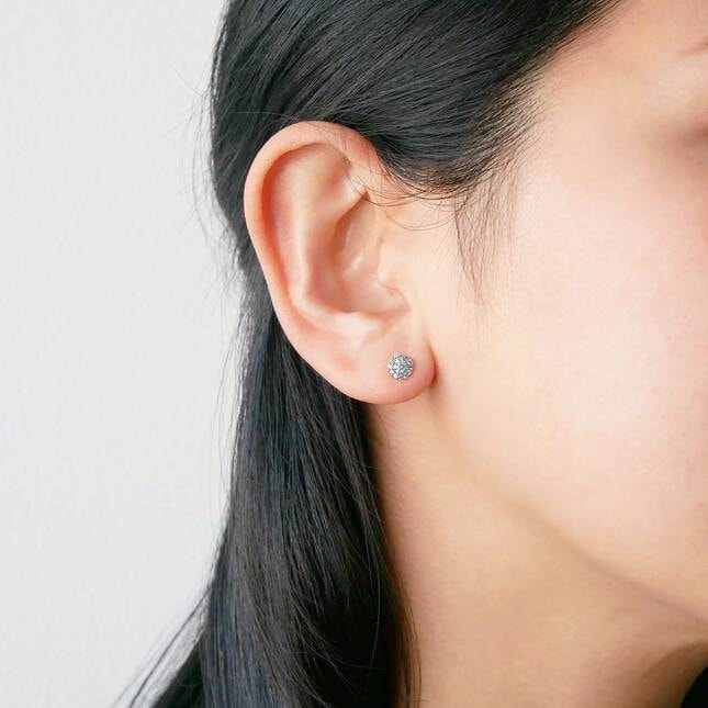 粒選りの一粒ダイヤモンドを繊細なメレダイヤモンドで縁取った、 優雅で高貴なイメージの「ダイヤモンドグレース」のピアス。