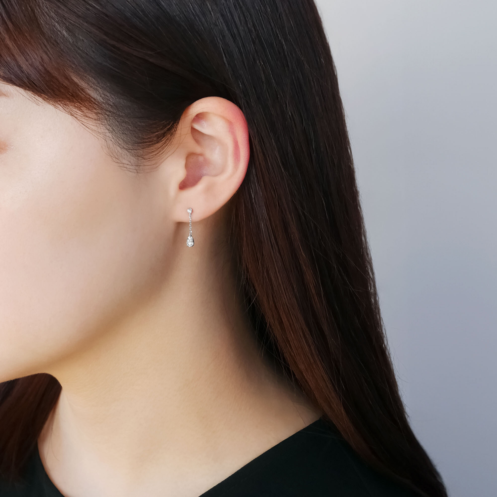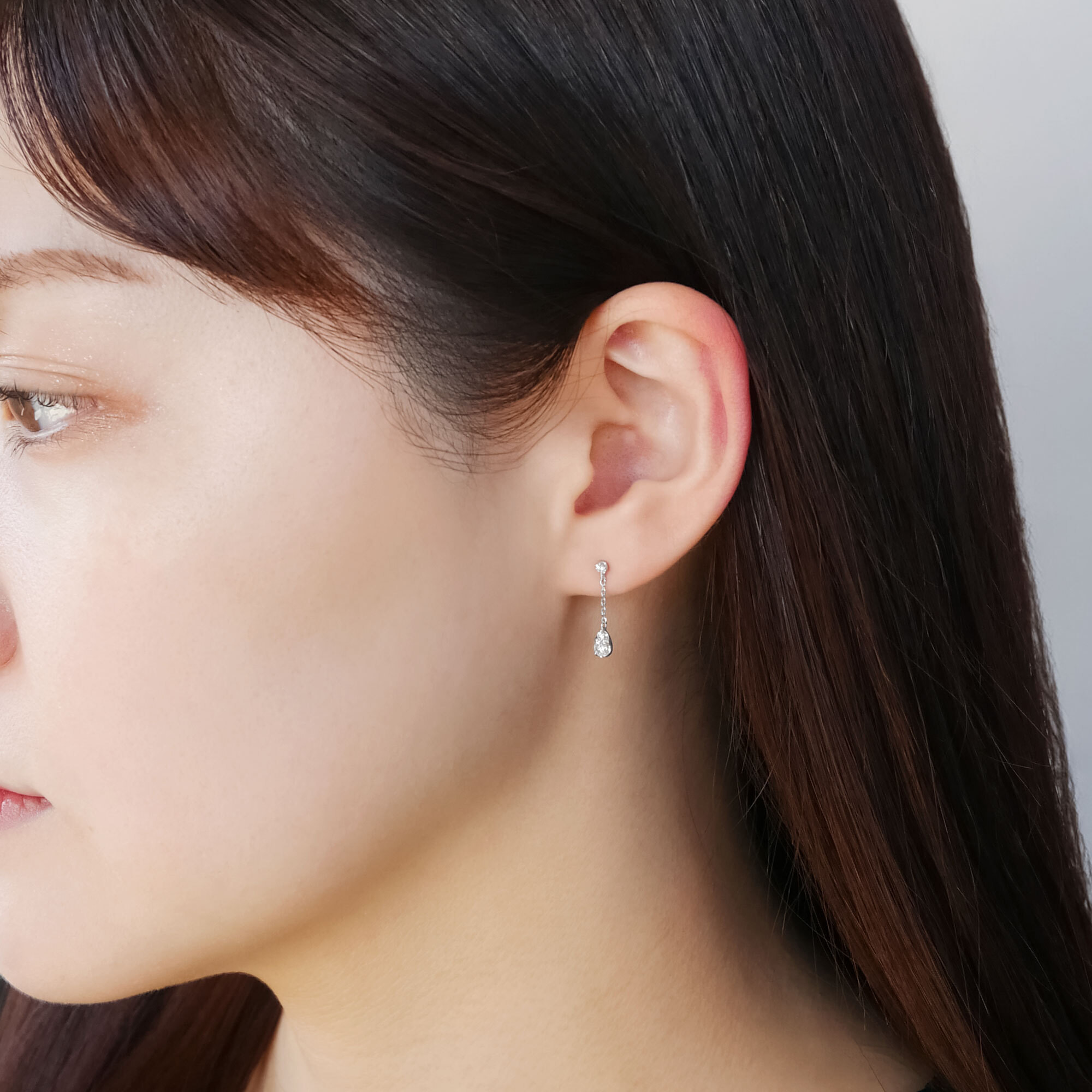 揺れ感の楽しめるチェーンタイプで、動くたびに横顔に輝きが広がります。