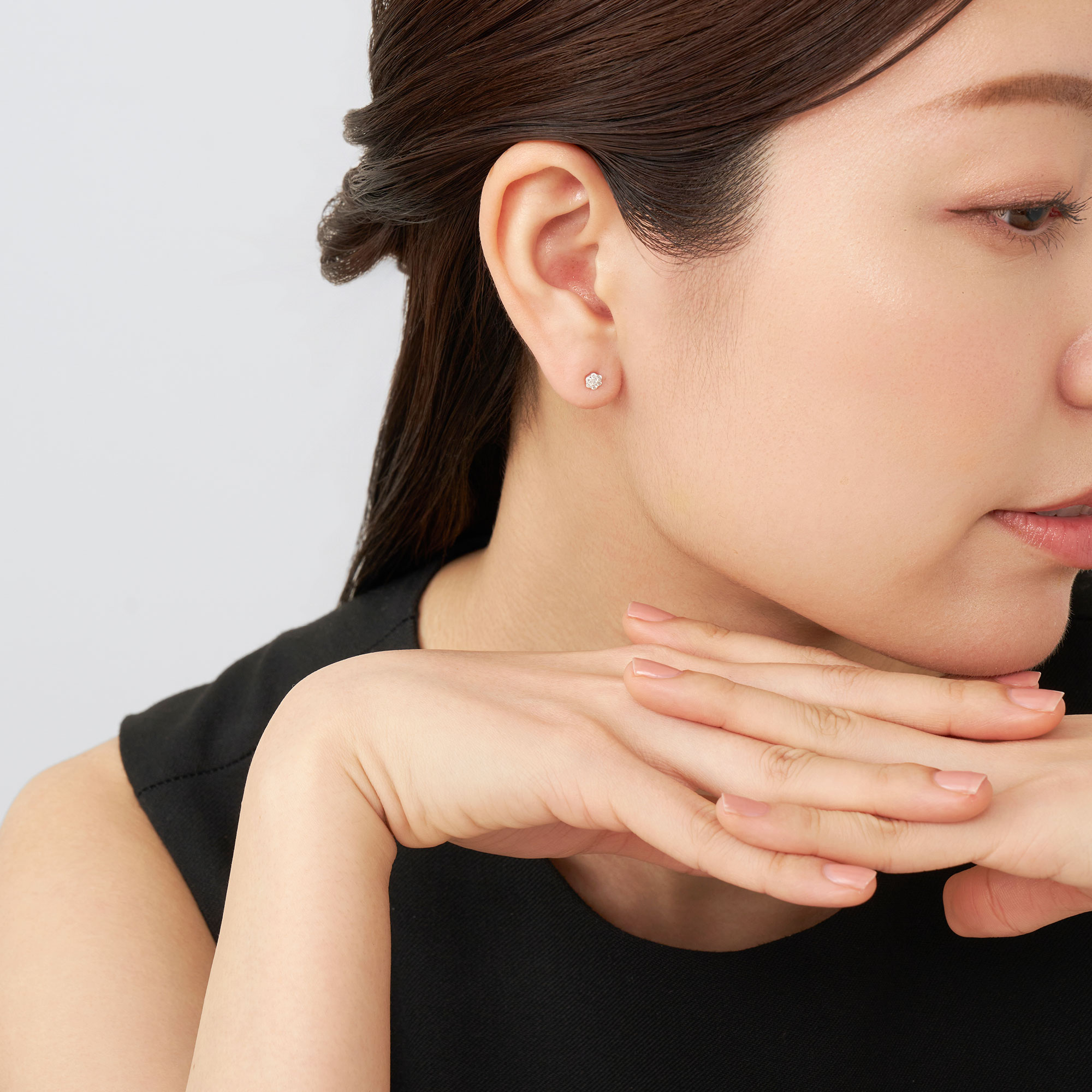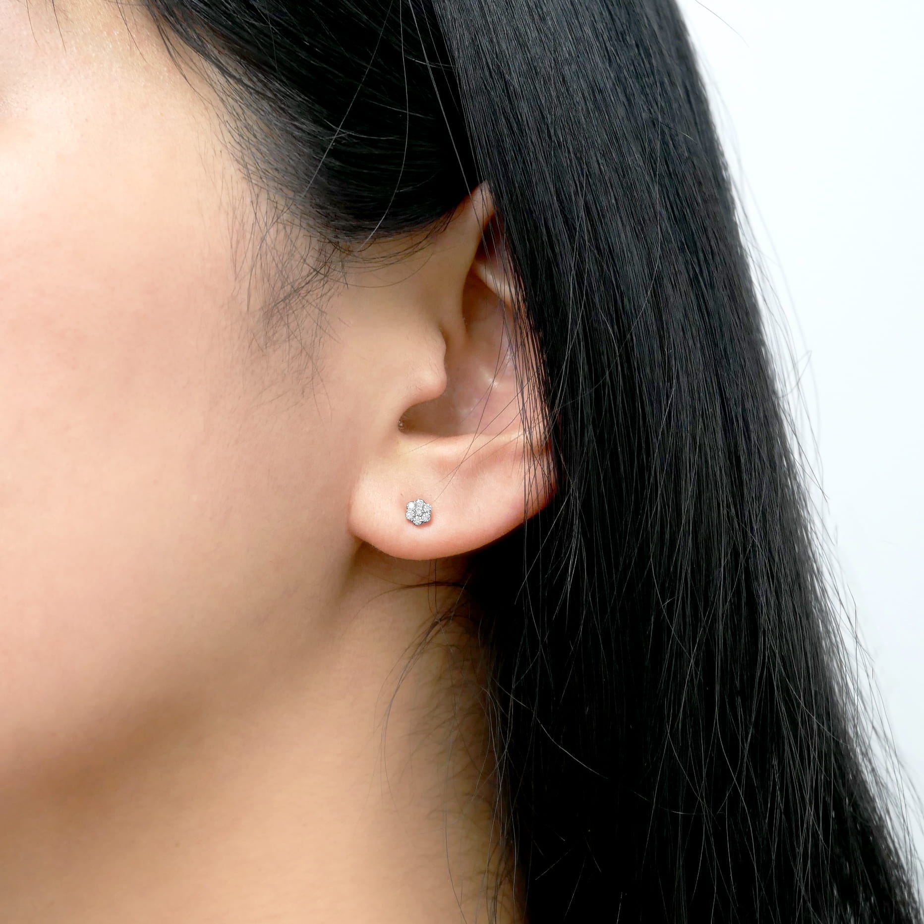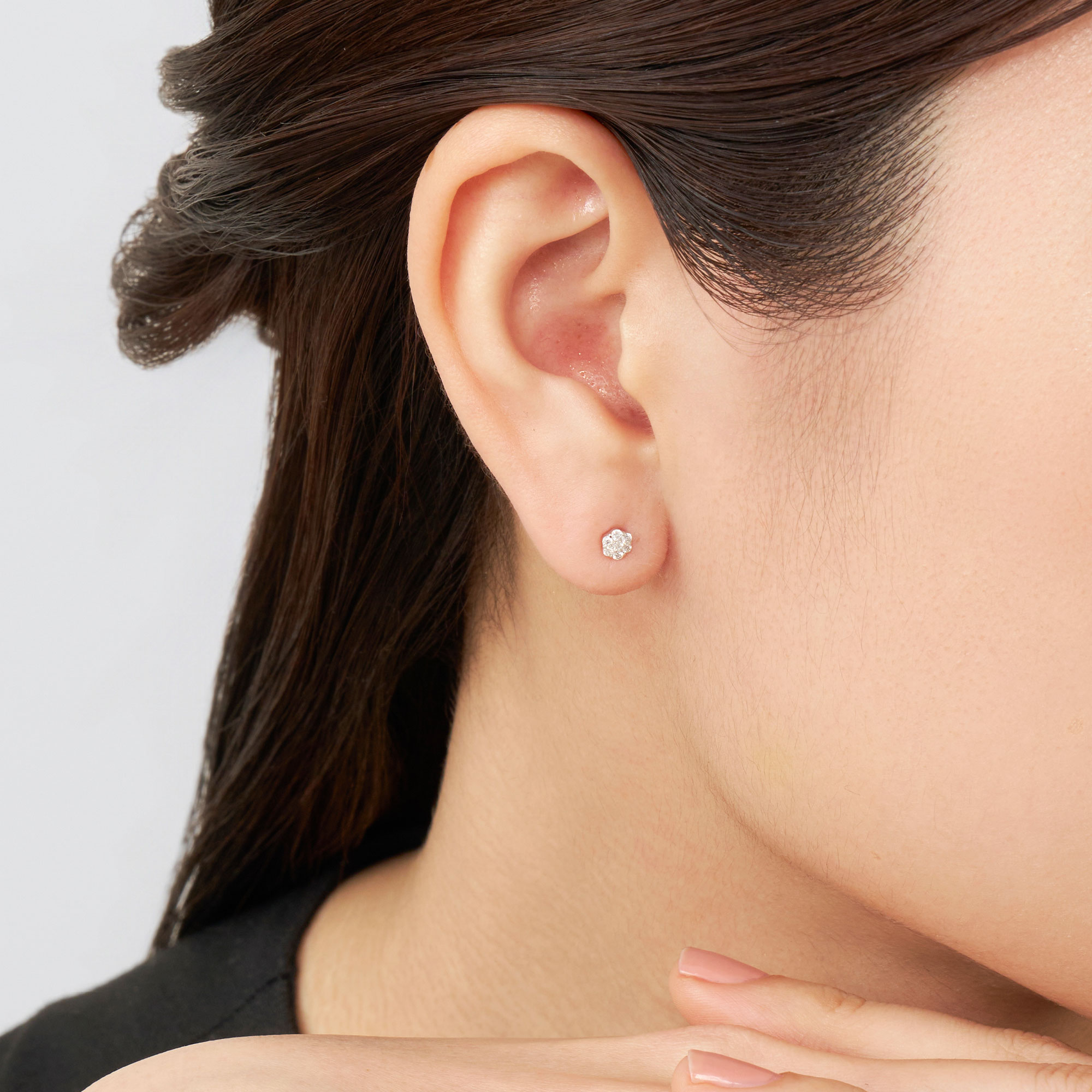 小さなダイヤモンド7石をぎゅっと集めた、プチサイズモチーフのピアス。