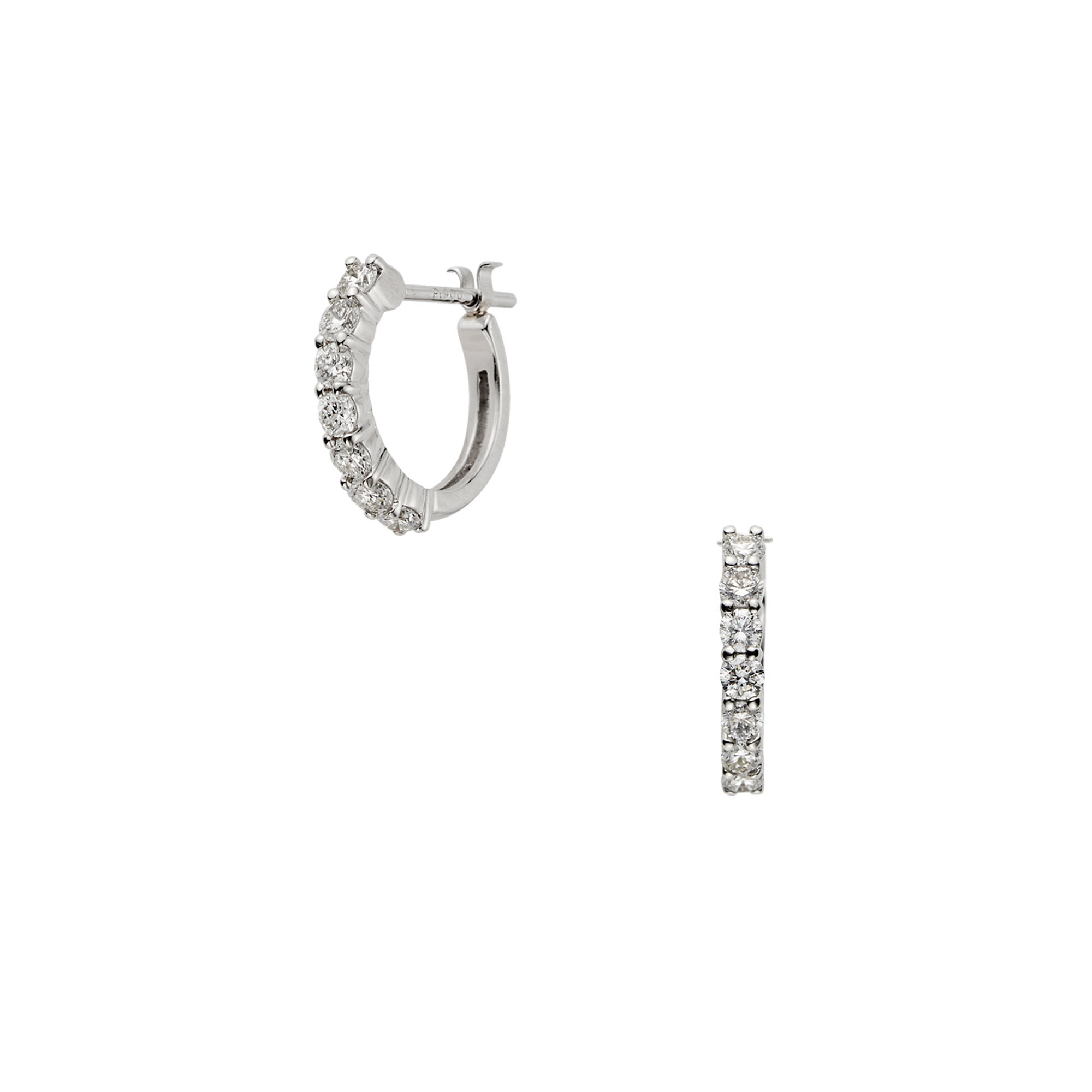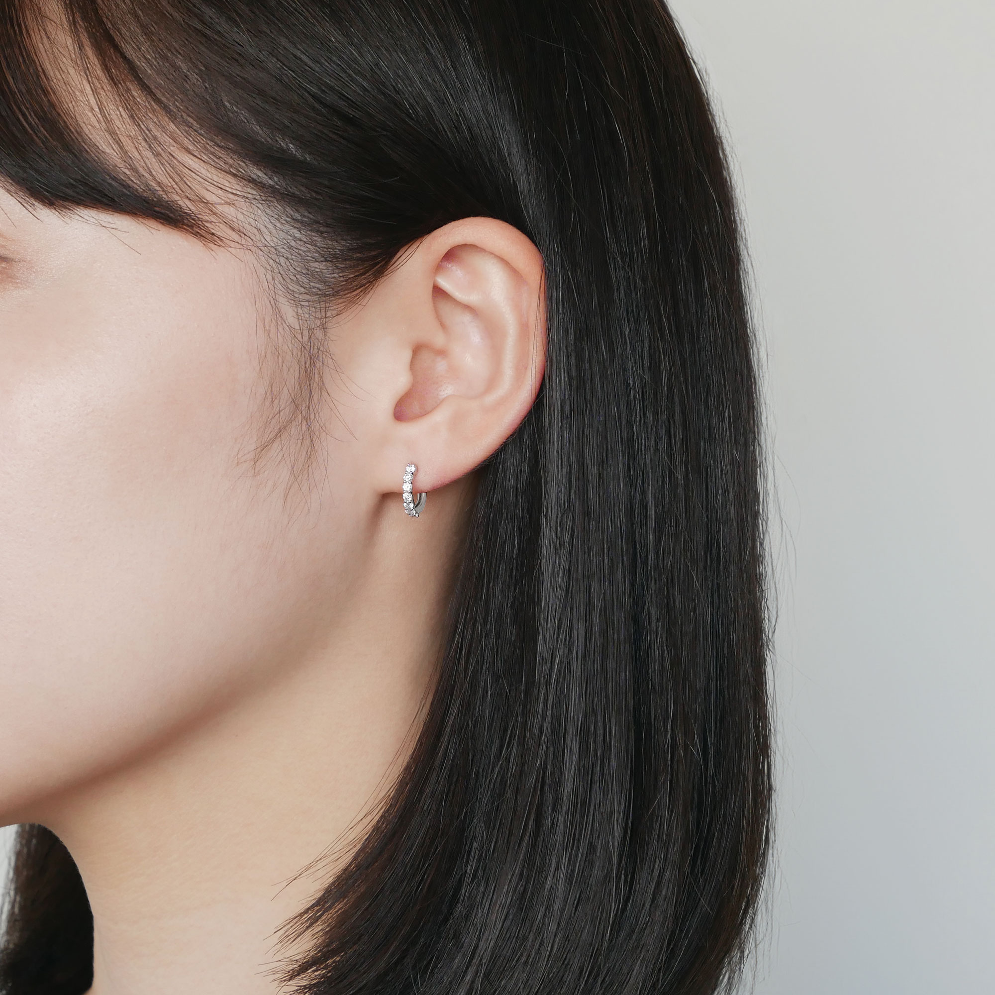 共有爪でセッティングしたダイヤモンドの輝きが美しい、シンプル&ベーシックなフープ型ピアス。