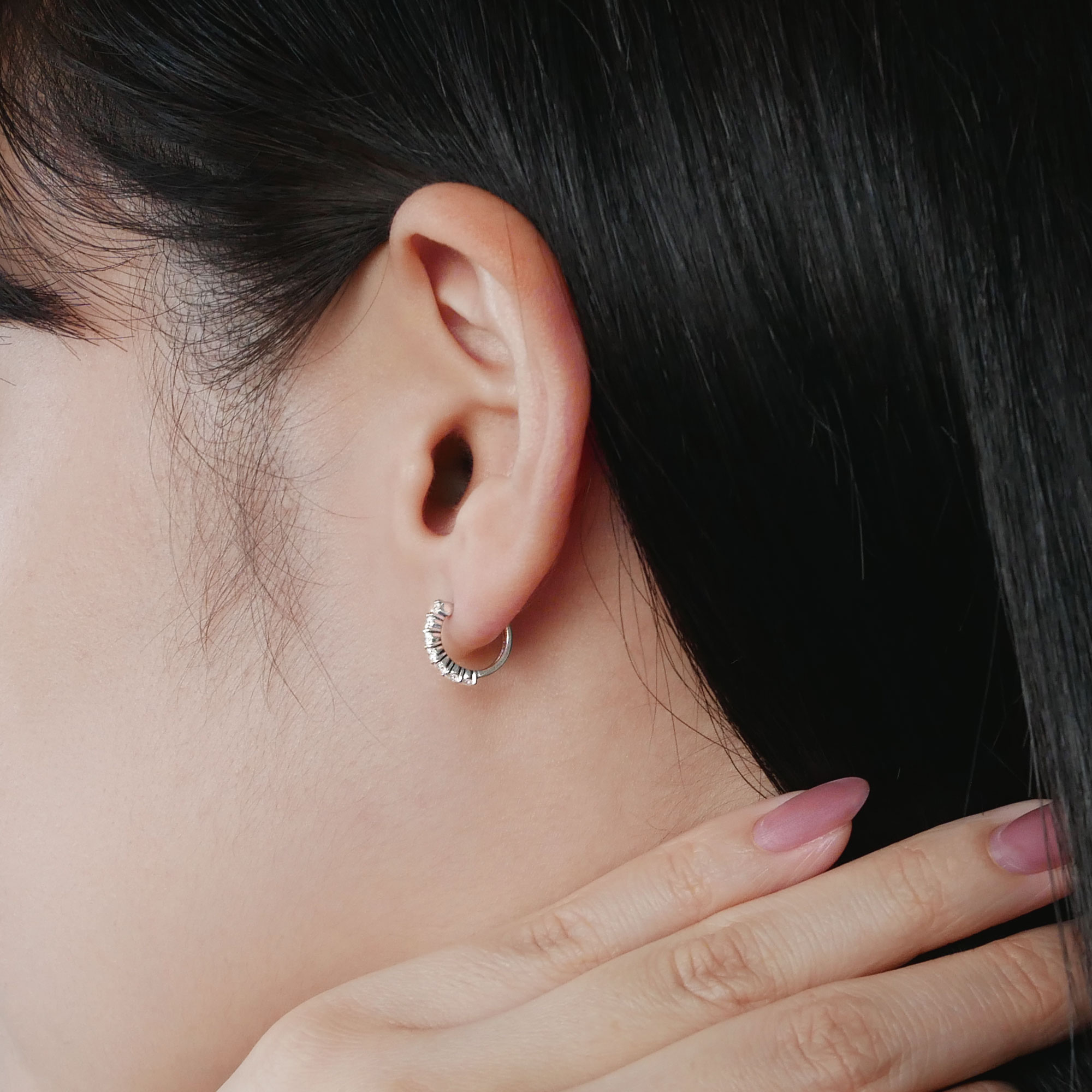 艶やかなプラチナのフープにあしらわれた粒感のあるダイヤモンドの煌めきが、高級感のある仕上がりです。