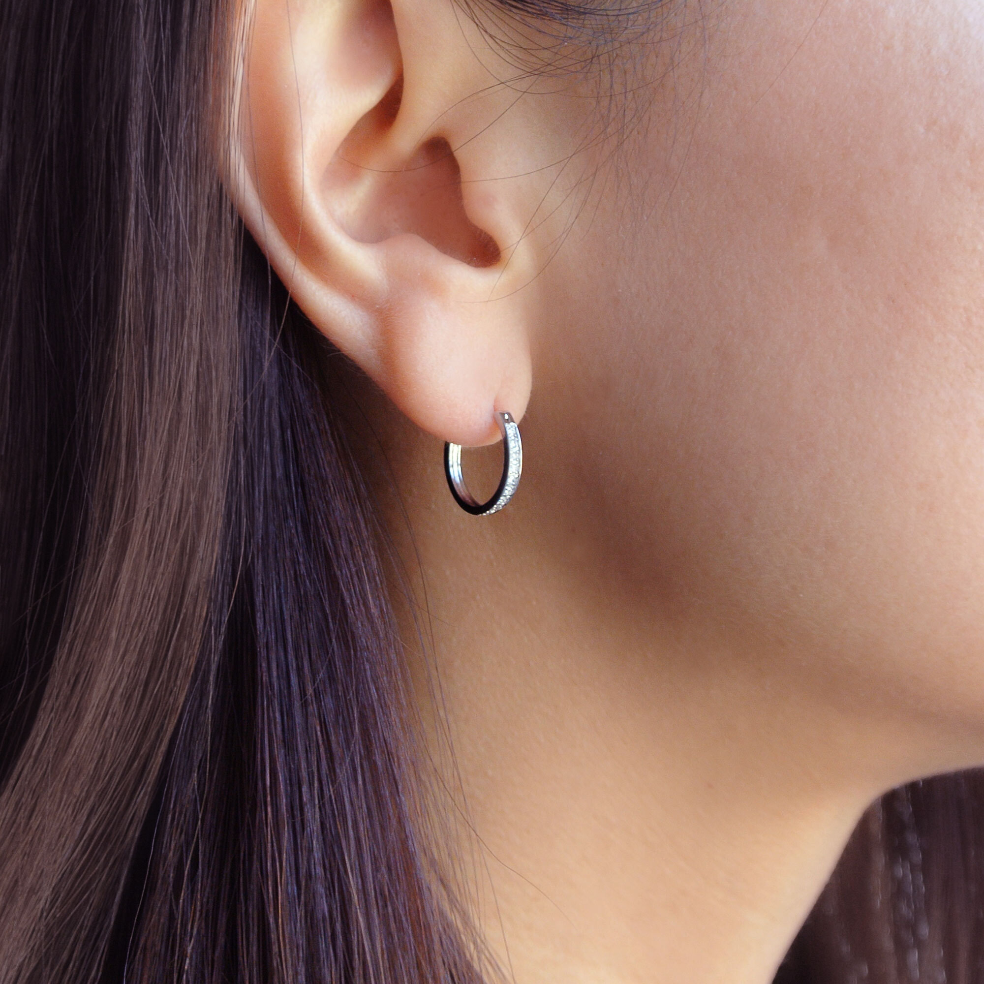 瑞々しいダイヤモンドが煌めく、モダンなオーバルのフープピアス。