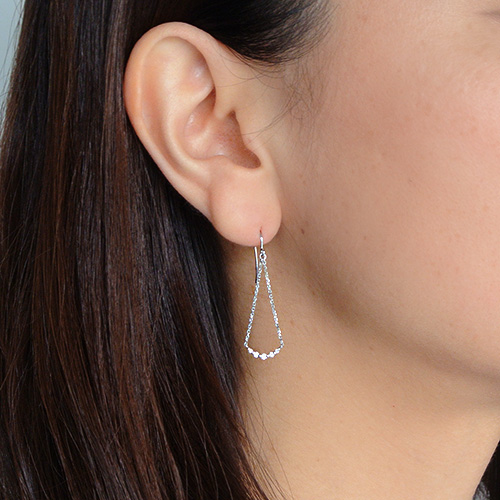 フックタイプはカジュアルな装いにもマッチし、長めのロングチェーンの揺れ感はしなやかさと女性らしい華やかな印象を醸し出してくれます。