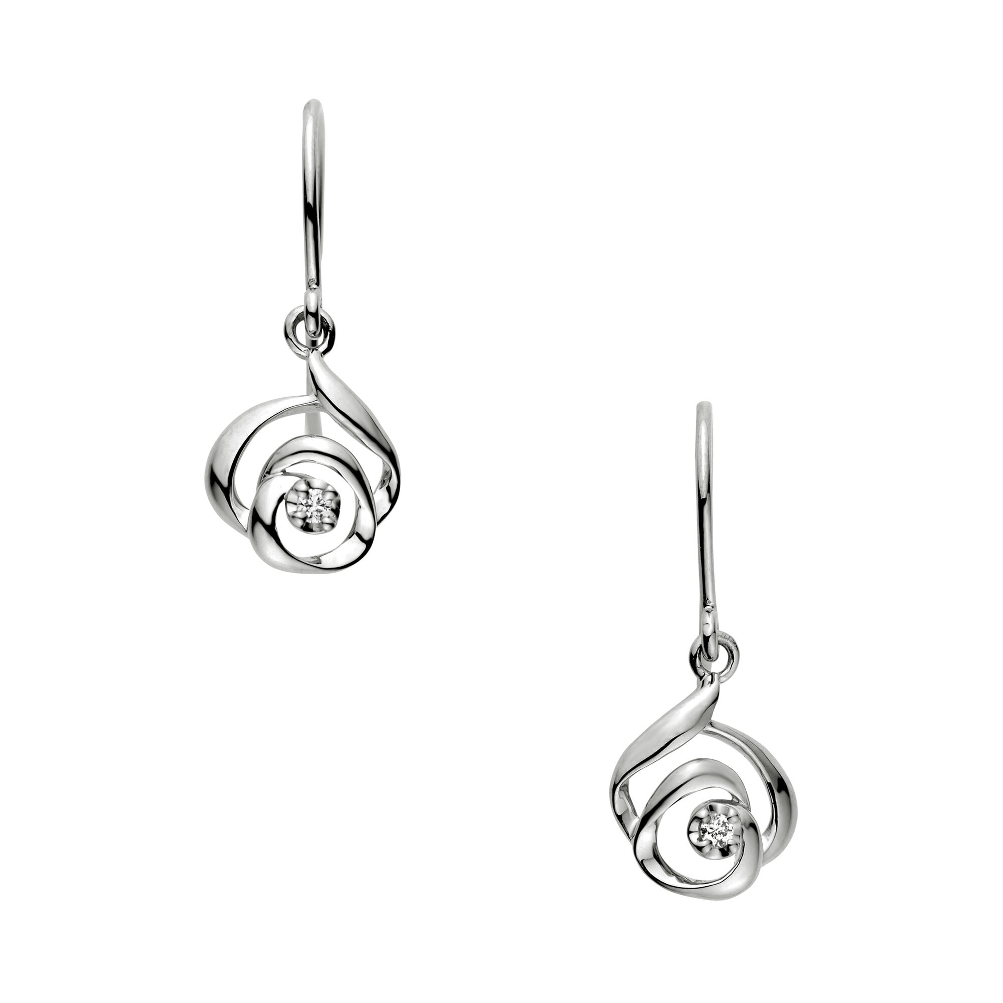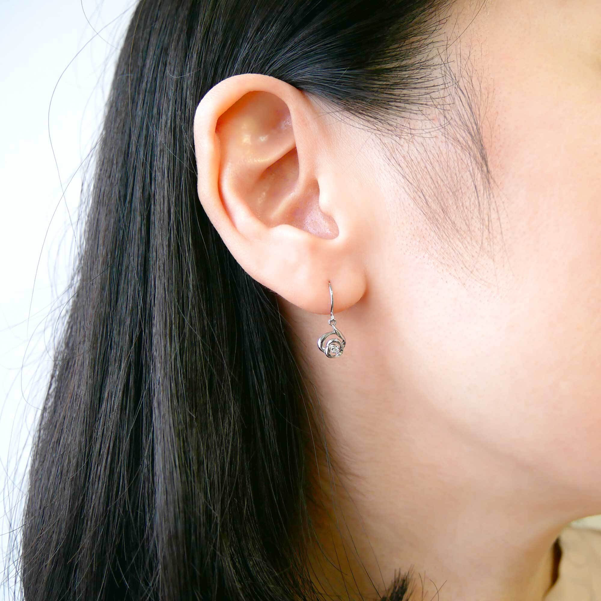 花びらを広げた一輪のバラをモチーフにした、フックタイプの揺れるピアス。