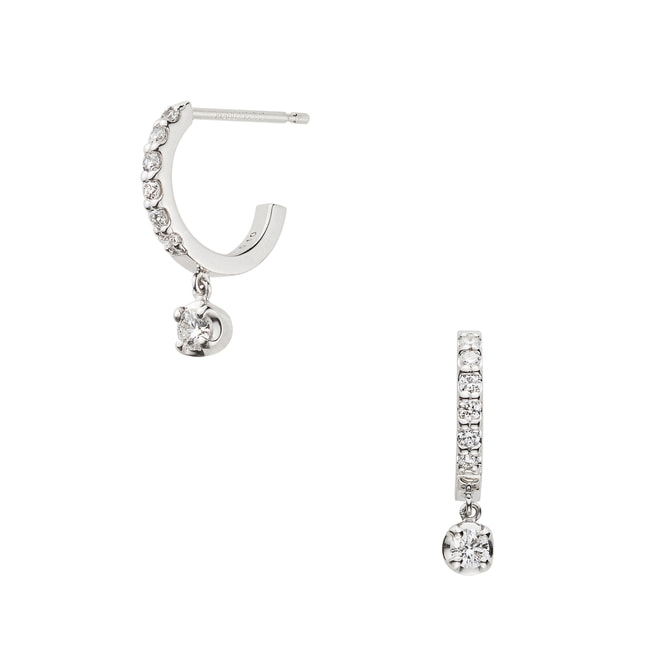 艶やかなプラチナのフープにあしらわれた粒感のあるダイヤモンドの煌めきが、高級感のある仕上がりです。