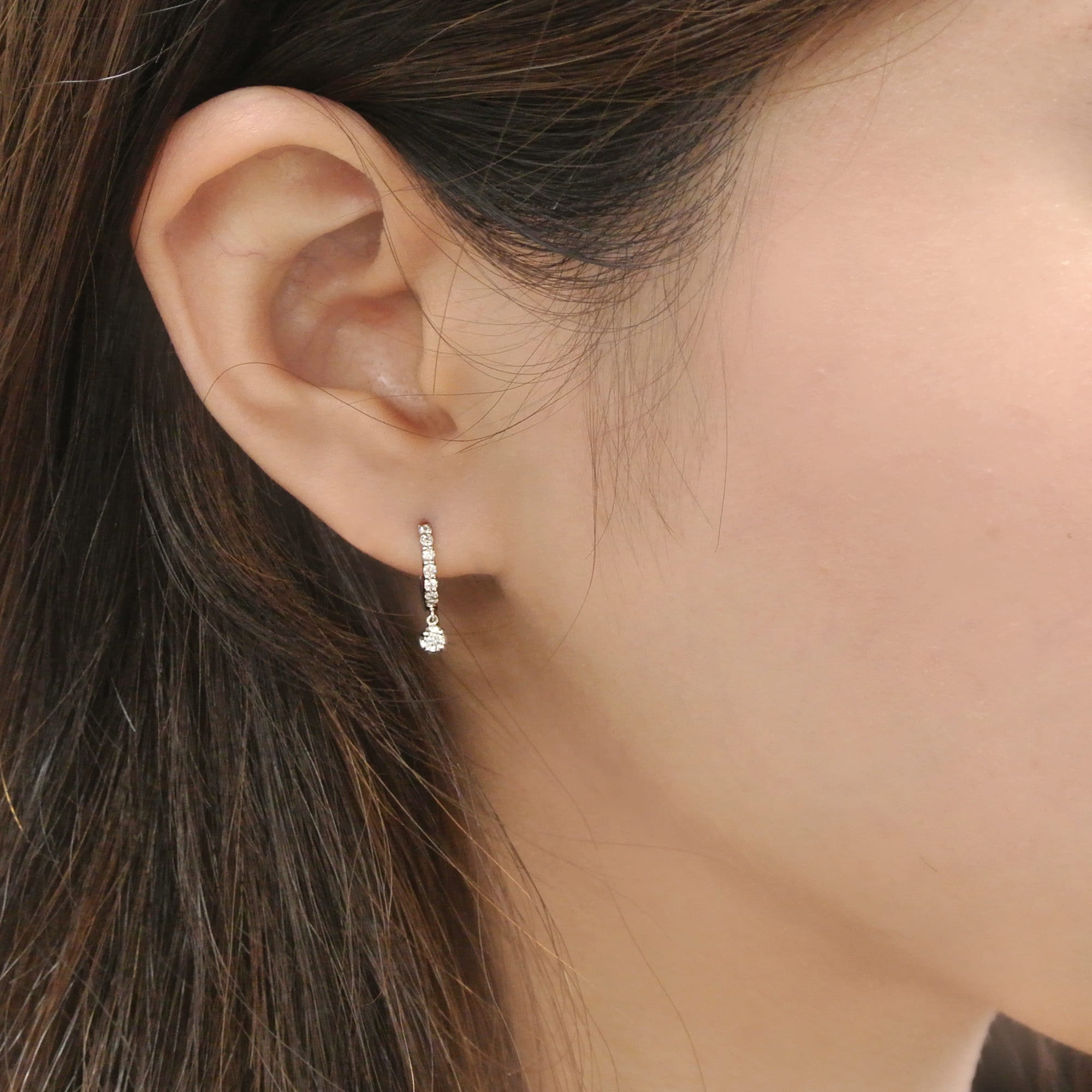 ダイヤモンドの輝きが美しい、シンプル&ベーシックなフープ型ピアス。