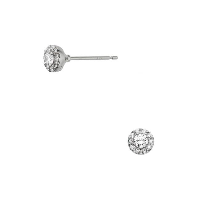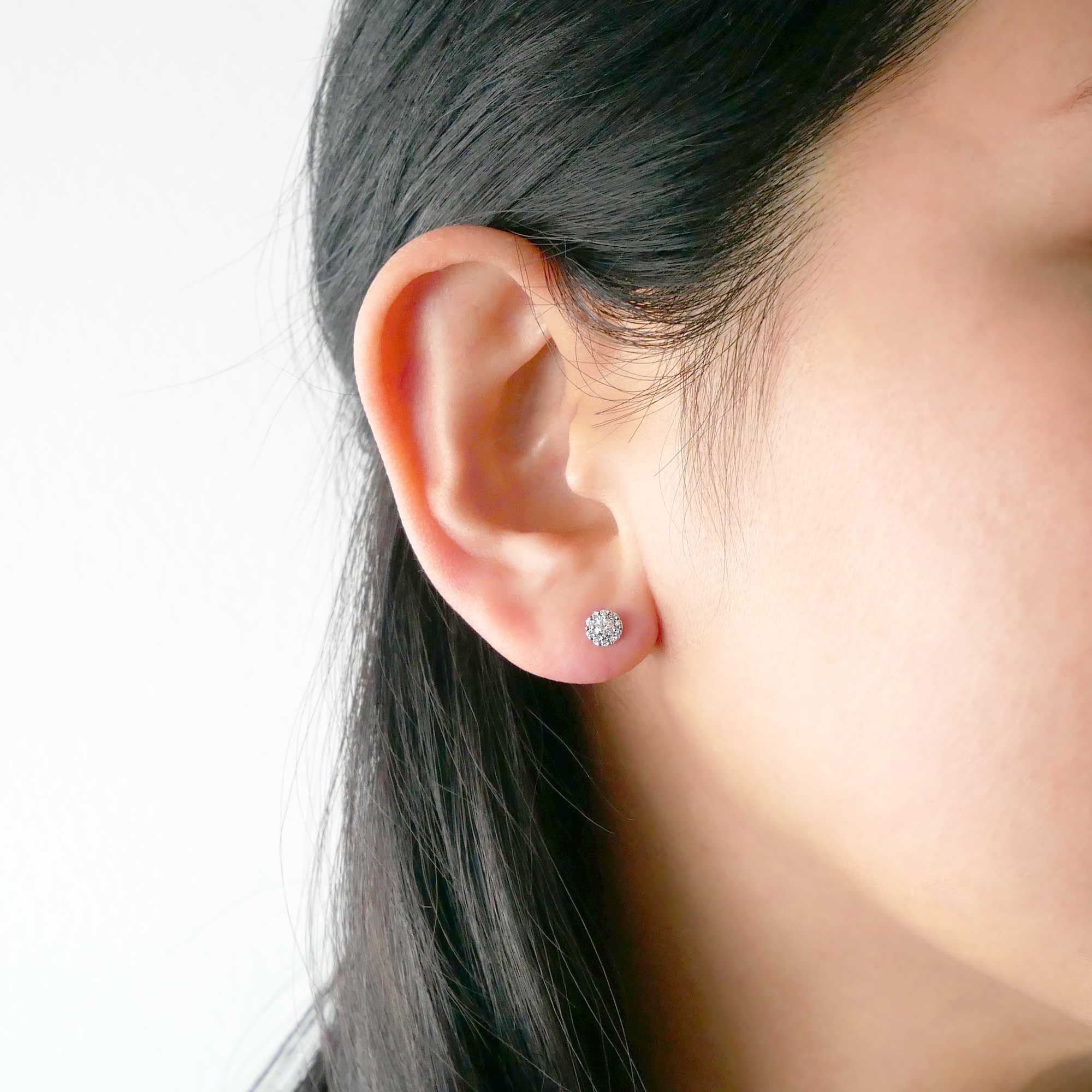粒選りの一粒ダイヤモンドを繊細なメレダイヤモンドで縁取った、 優雅で高貴なイメージの「ダイヤモンドグレース」のピアス。