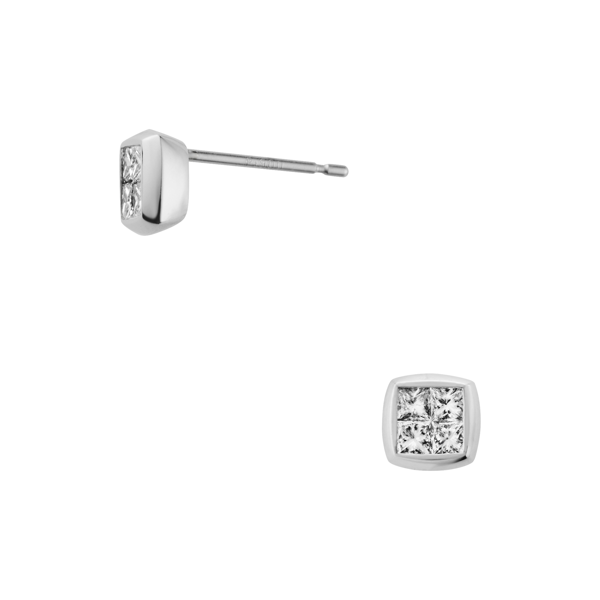 4石のプリンセスカットダイヤモンドを、爪の見えないミステリーセッティングと呼ばれる手法でセッティング。