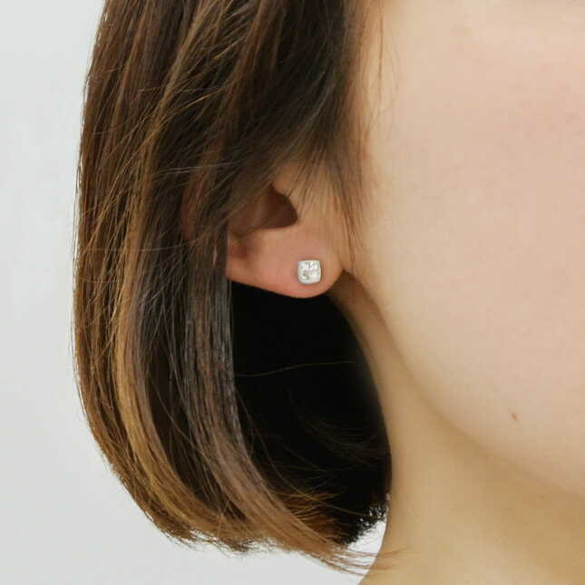 ふっくらと仕上げたアウトラインによってソフトな印象がプラスされ、女性らしい優美な表情も兼ね備えたピアス。
