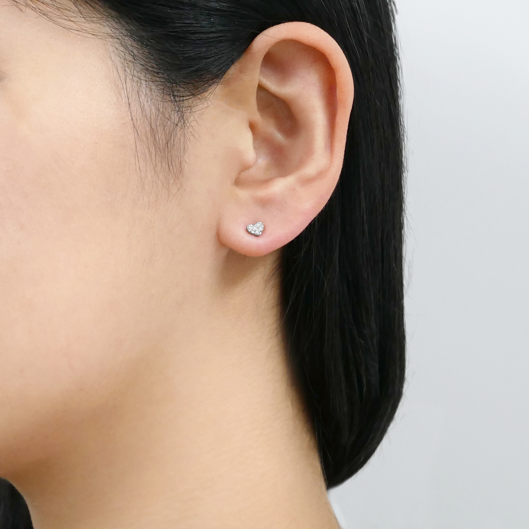 敷き詰められたダイヤモンドの輝きが美しく、愛らしいフォルムのハートモチーフピアス。