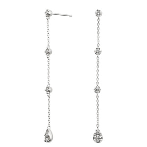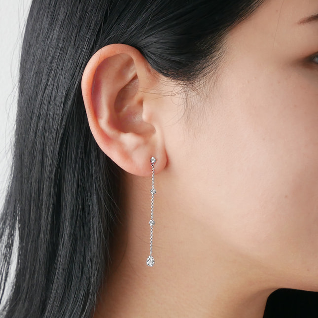 ダイヤモンドの煌めきがコーディネートのアクセントになってくれるロングピアス。