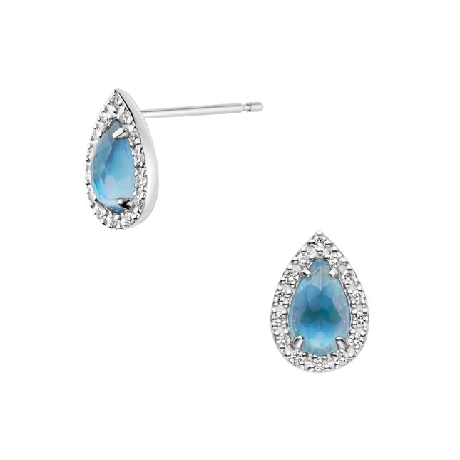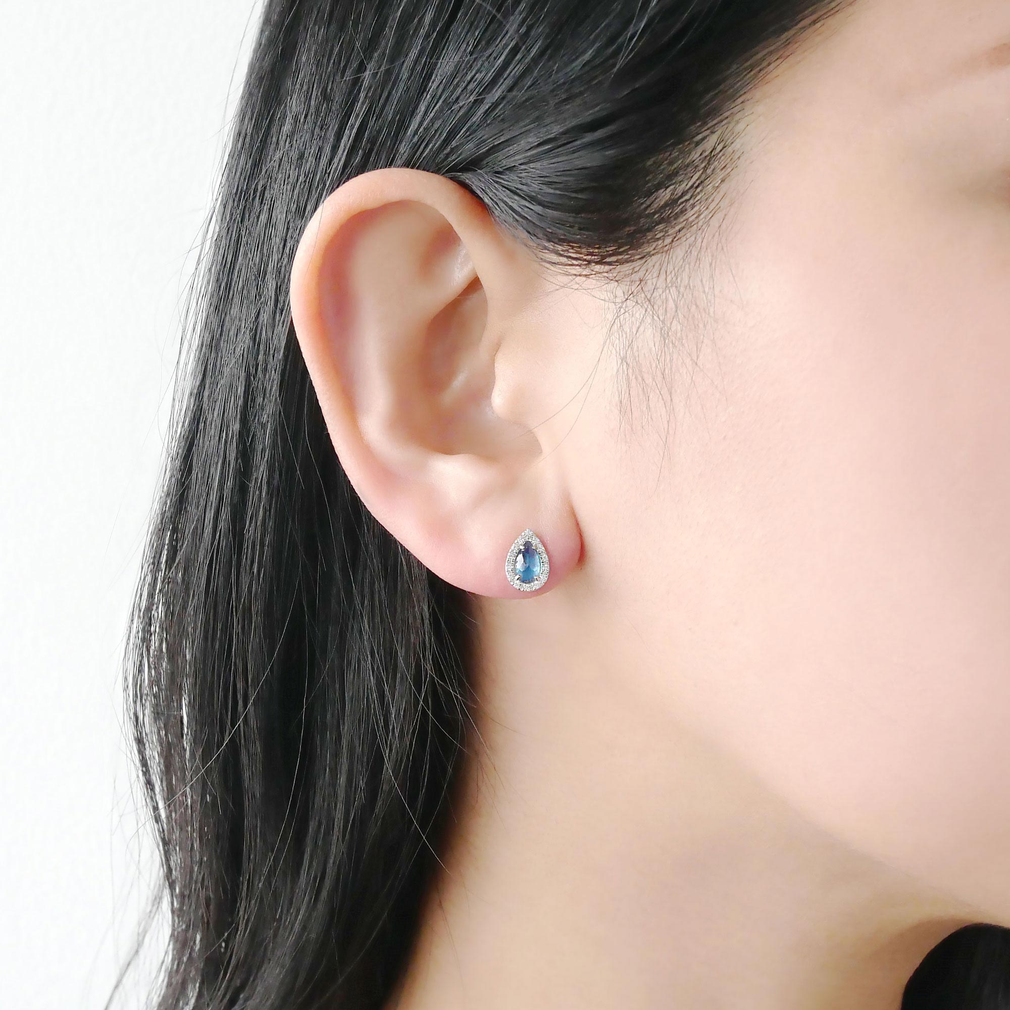 清らかな水を奥底に湛えたような神秘的なブルーが印象的なしずくモチーフのピアス。