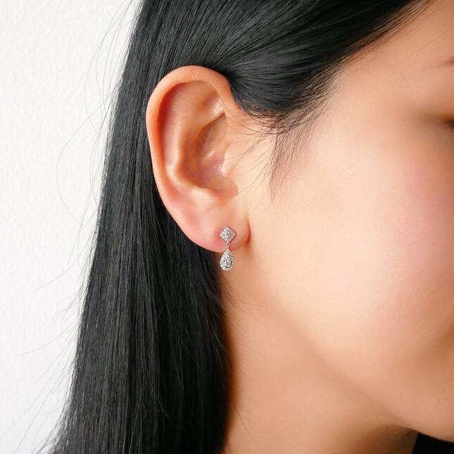 凛としたスクエアモチーフと、女性らしい雫のモチーフによってモダンさとエレガントさを兼ね備えたデザイン。