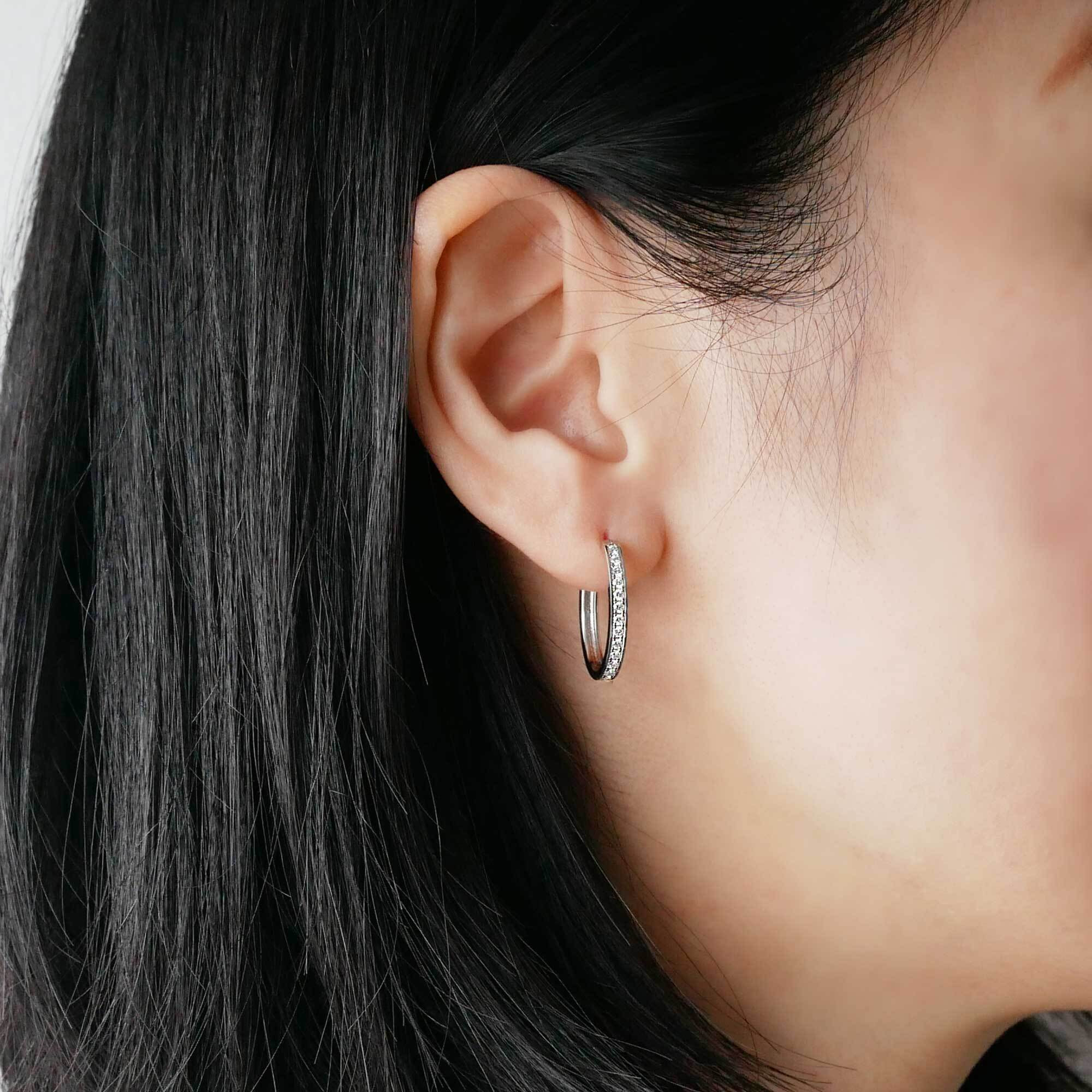 瑞々しいダイヤモンドが煌めく、モダンでラグジュアリーなオーバルピアス。