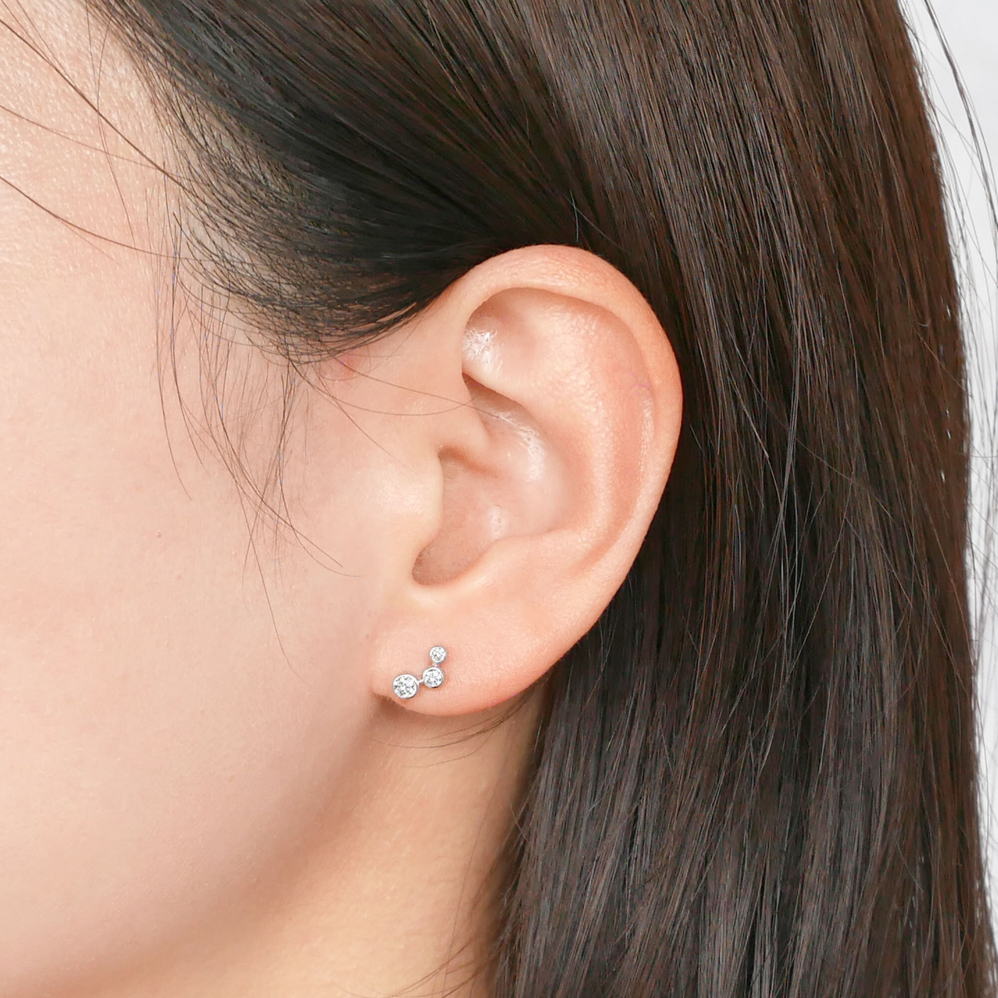 しっかりと厚みを持たせたこだわりの作りで、ダイヤモンドが耳元から浮かび上がるように輝きます。