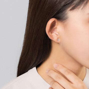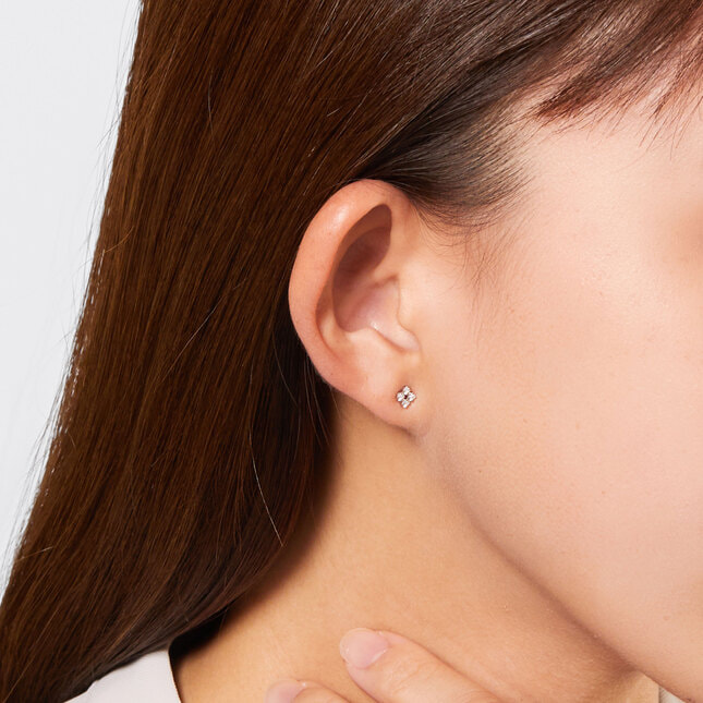 プラチナのピュアな輝きと、一粒タイプとは違った愛らしい表情が、上品な横顔を演出します。