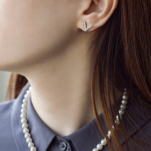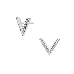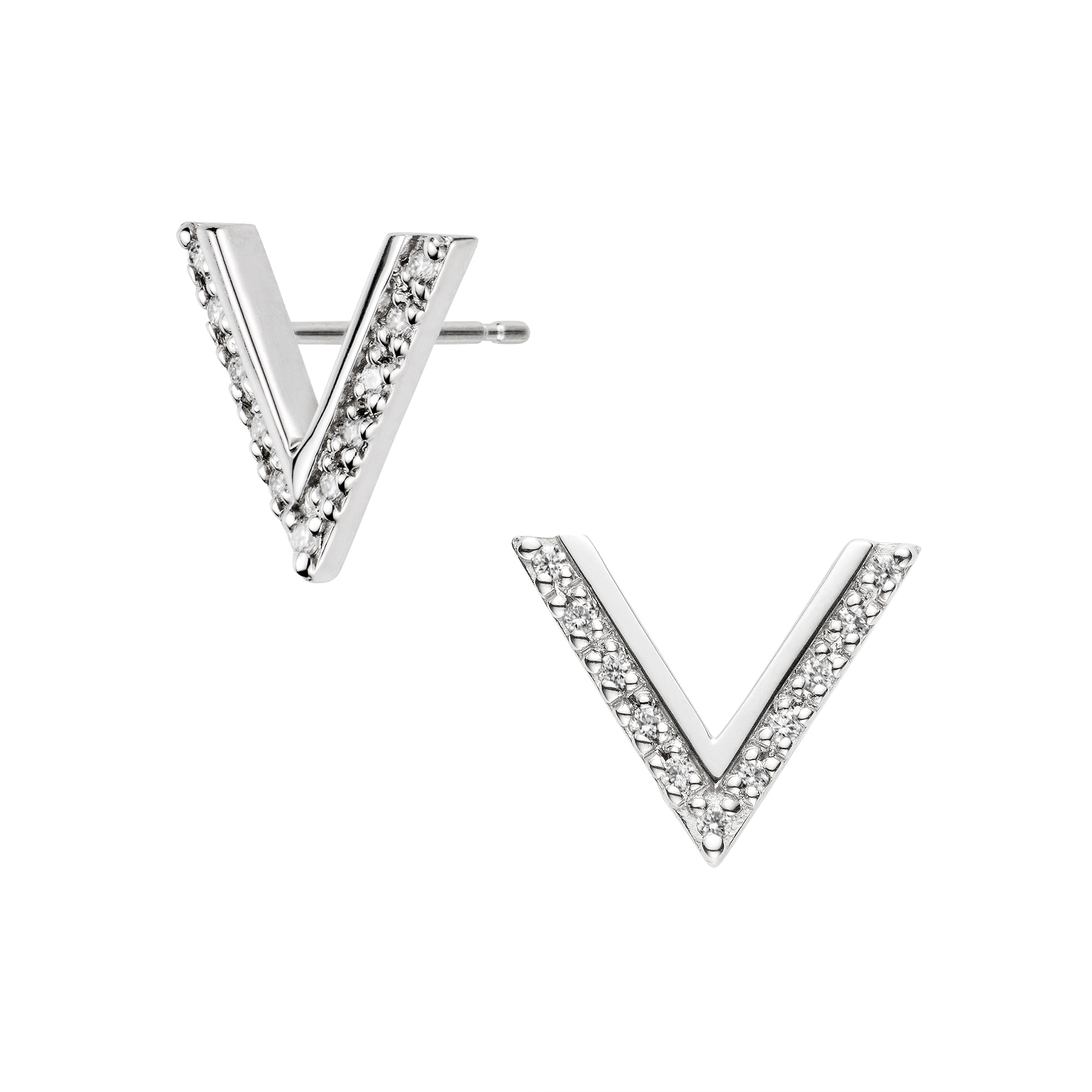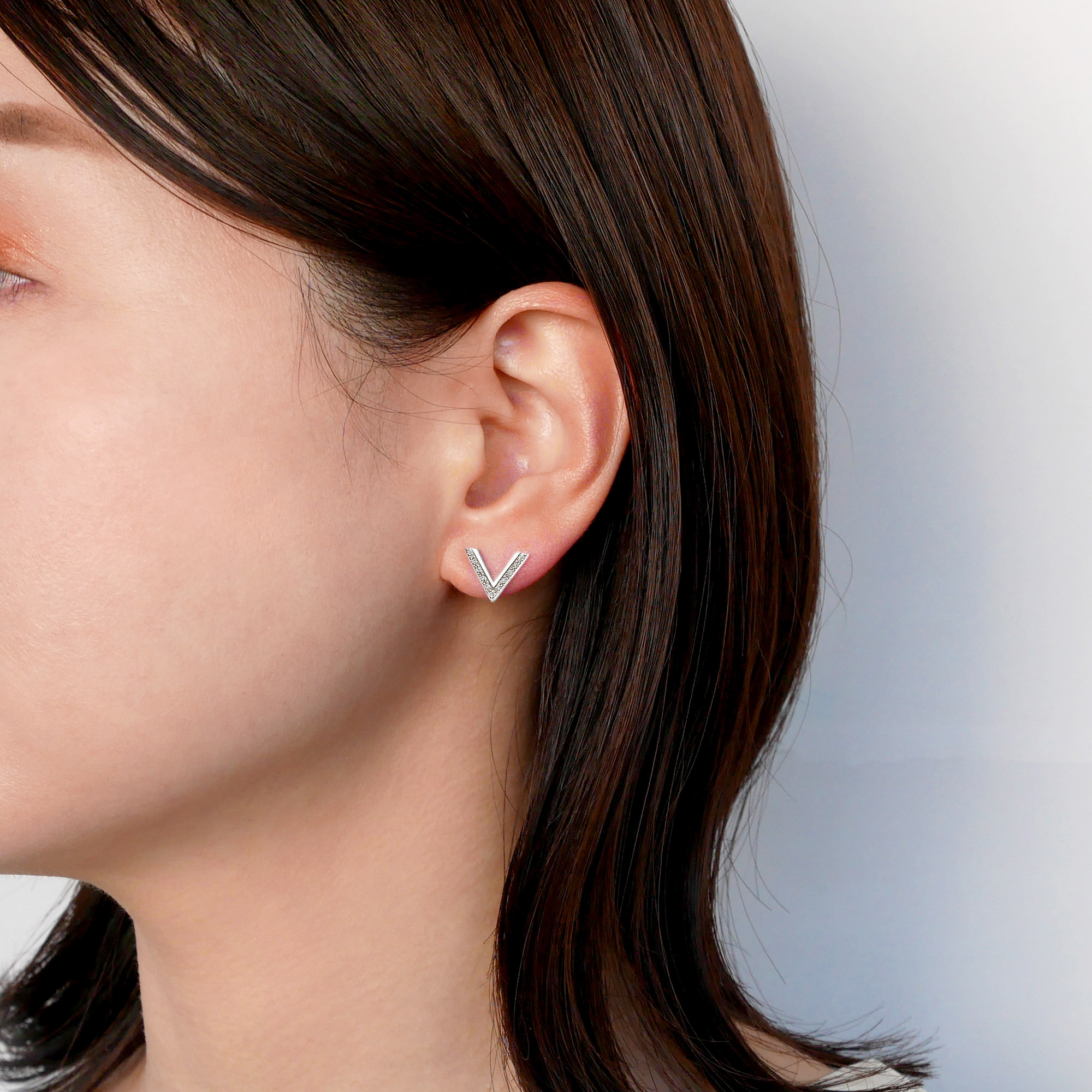 整然と並んだダイヤモンドの煌めきを引き立てるように、艶やかなプラチナの光沢がVのラインを描く、エッジの効いたデザイン。