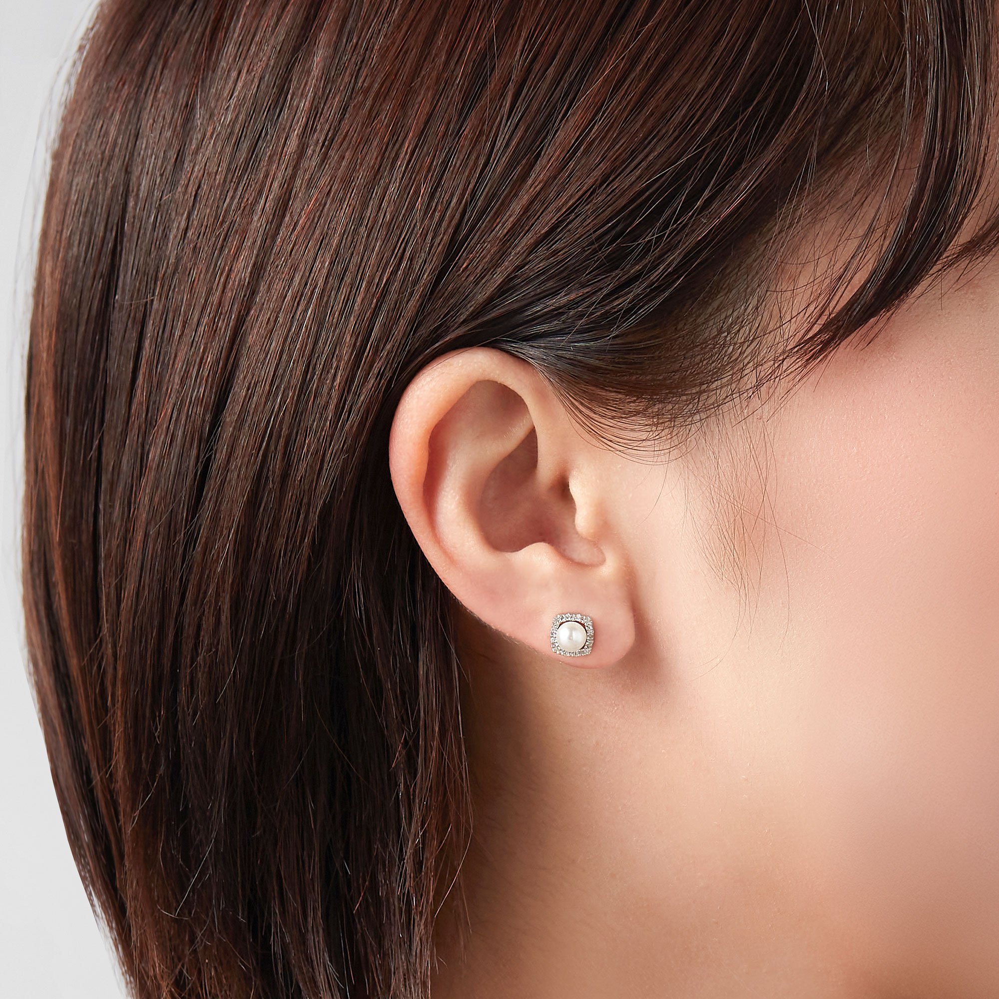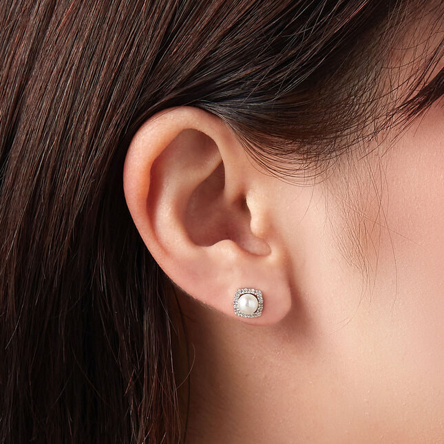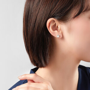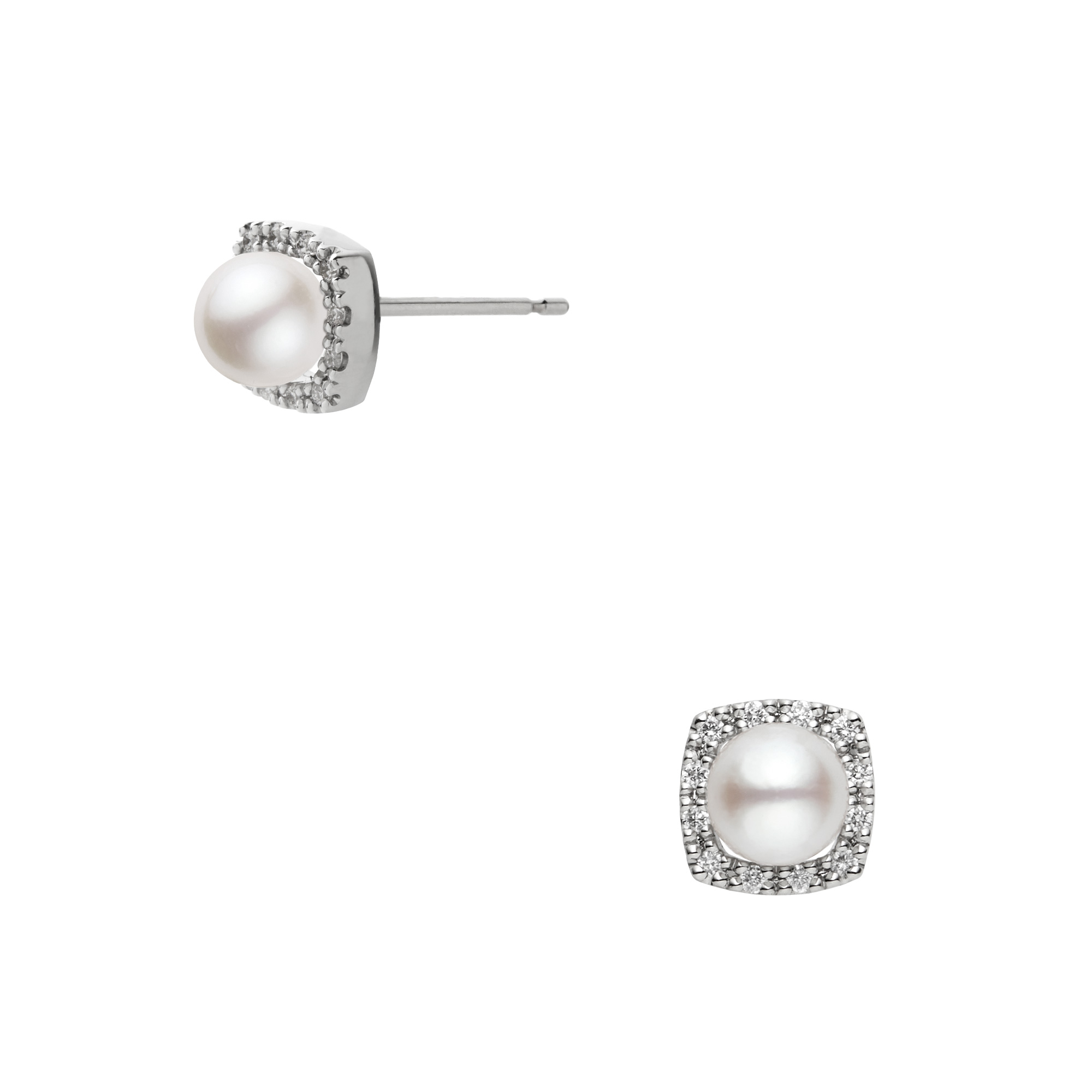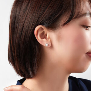 上品な色合いと光沢が魅力のアコヤパールを、ダイヤモンドで贅沢に取り巻いたピアス。