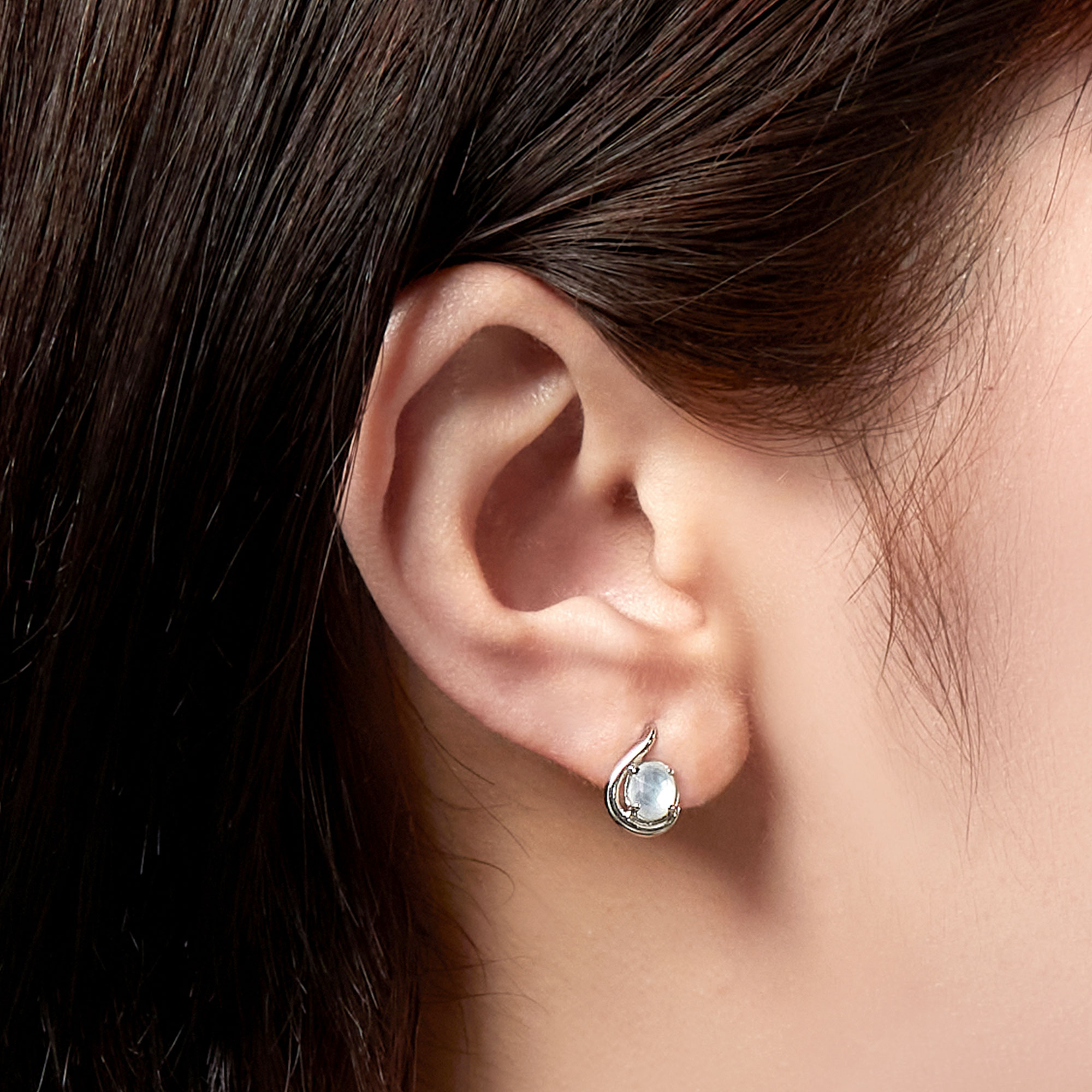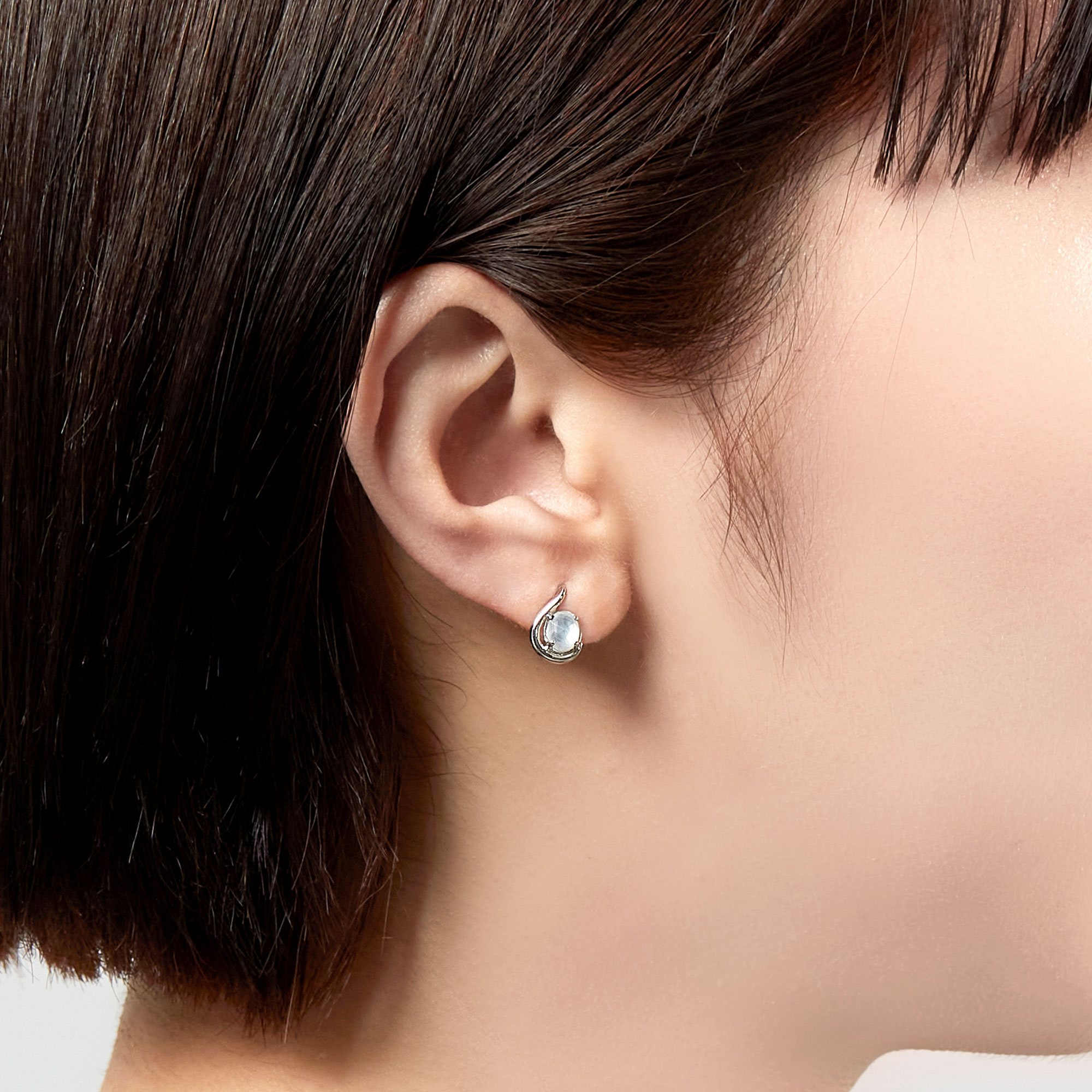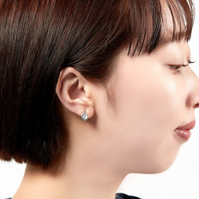 ニュアンスのある色合いのダブレットストーンとクールなプラチナの光沢が、耳元に涼しげな印象を添えます。
