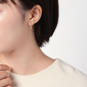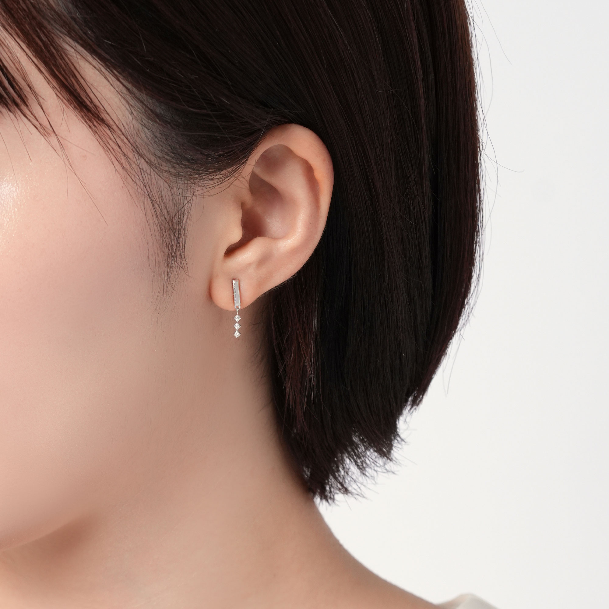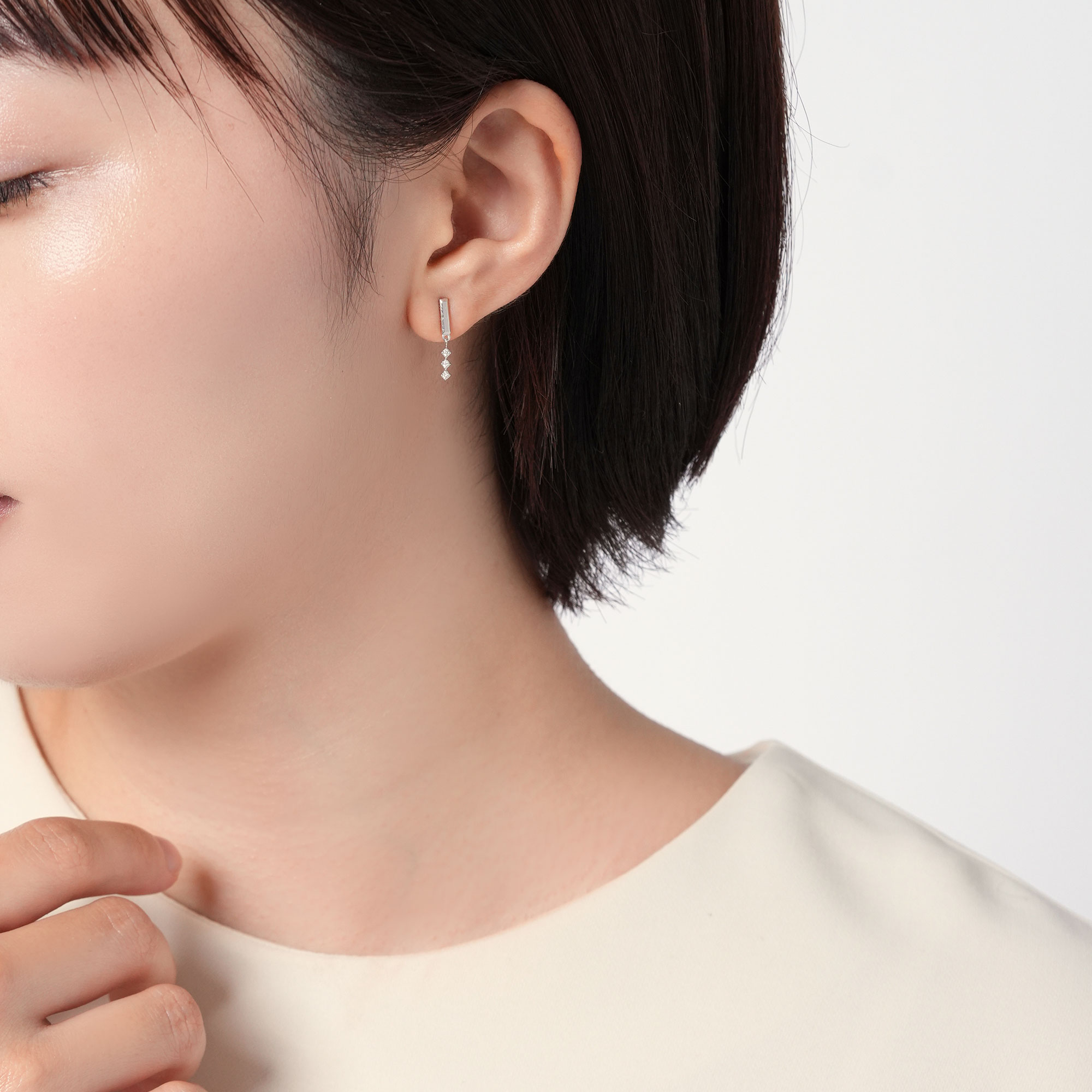 動きに合わせてゆらめく3石のダイヤモンドが、横顔に繊細な輝きをまとわせるピアス。