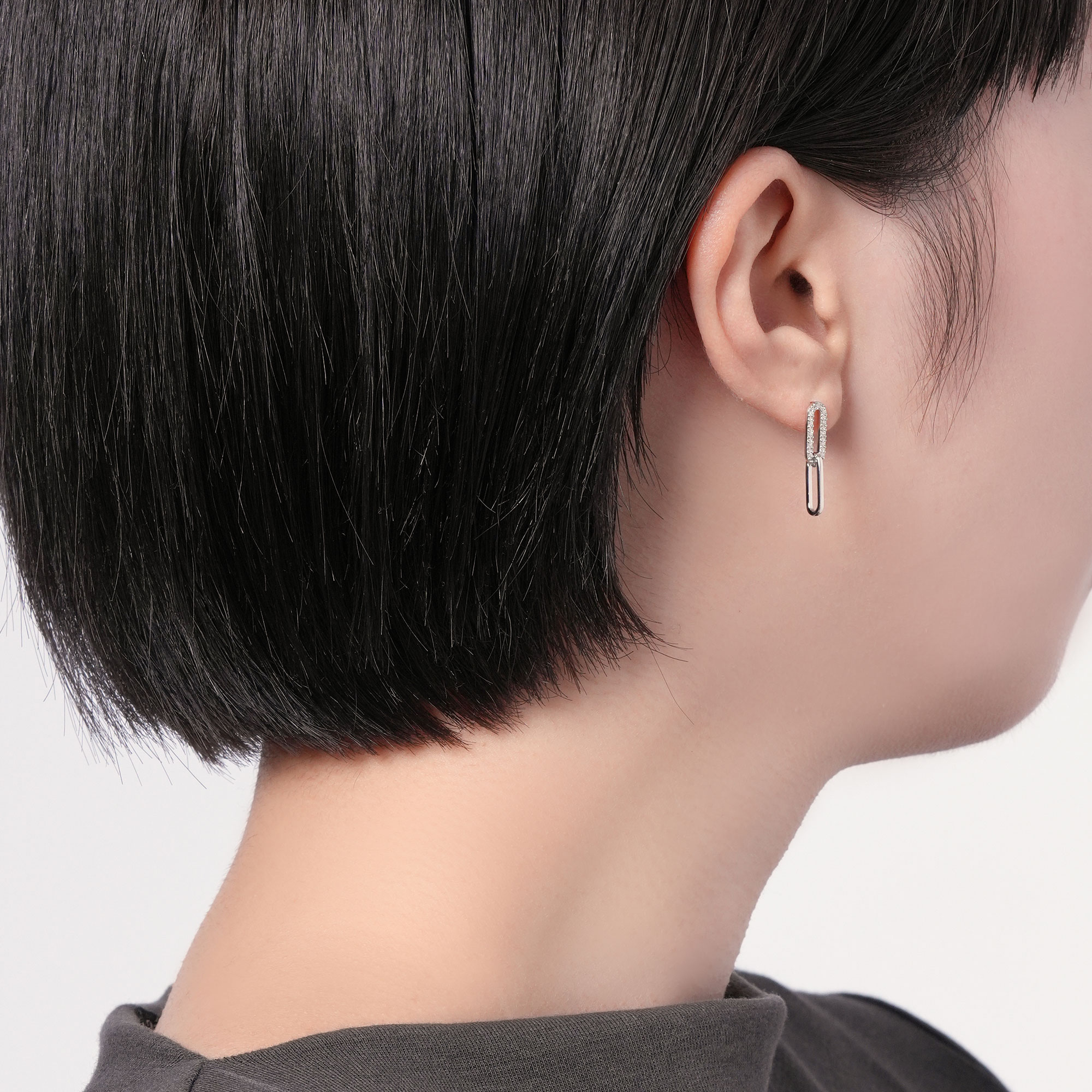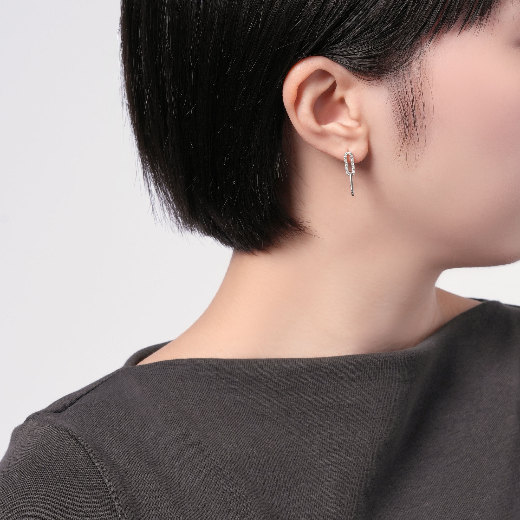 2つ連なるトラック型のパーツがモダンな輝きを放つピアス。