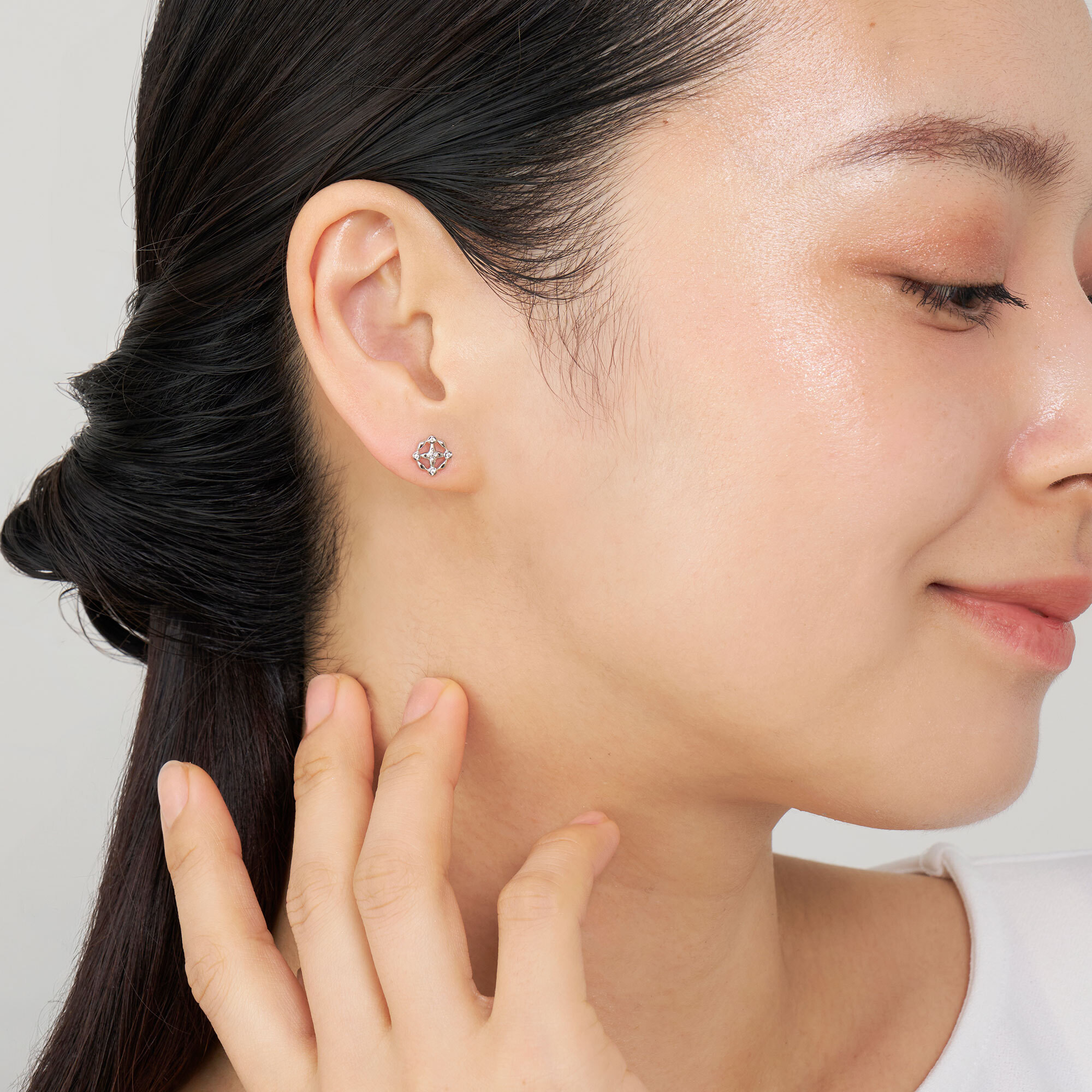 柔らかなフォルムで光を描いたプラチナダイヤモンドピアス。