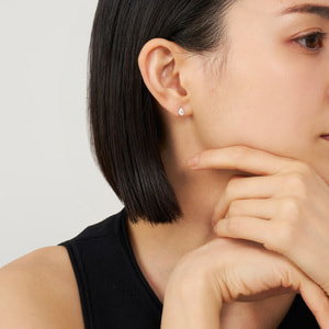 ポストの位置は耳たぶの際につくよう、敢えて上部ギリギリに。こぼれ落ちるかのような緊張感を感じさせるこだわりのセッティングです。