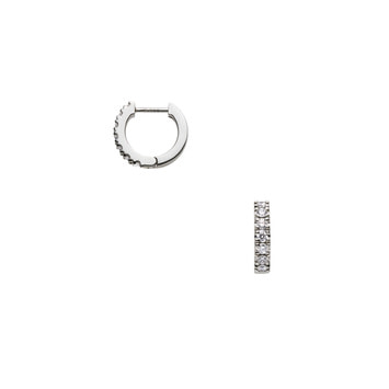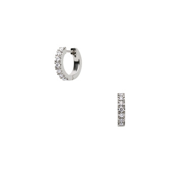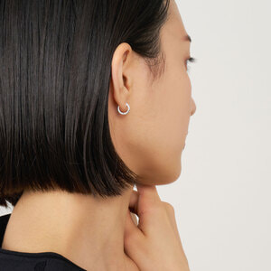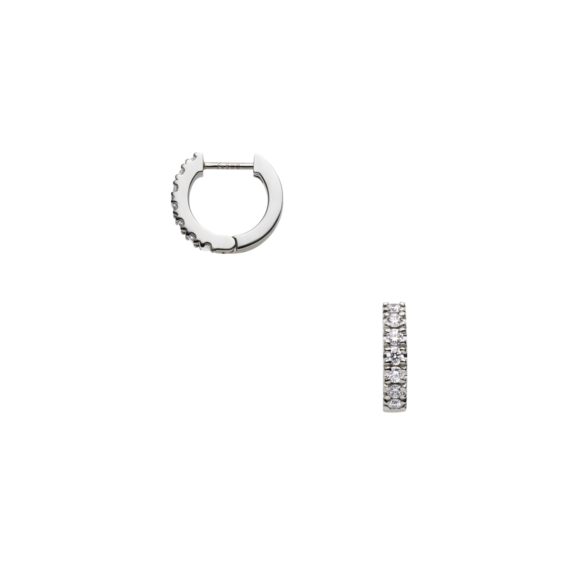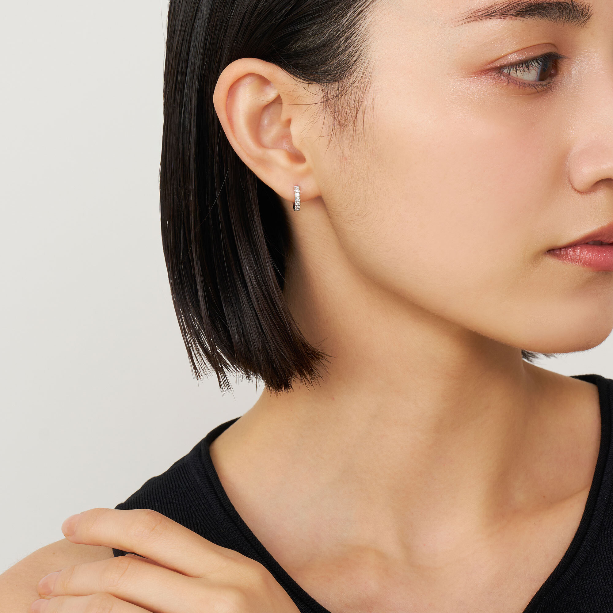 瑞々しく輝くダイヤモンドをプラチナのフープにあしらったベーシックなデザインは、定番であるからこそ細部にこだわり、フラットに仕上げた側面や、キャッチが一体化された作りで洗練された印象に。