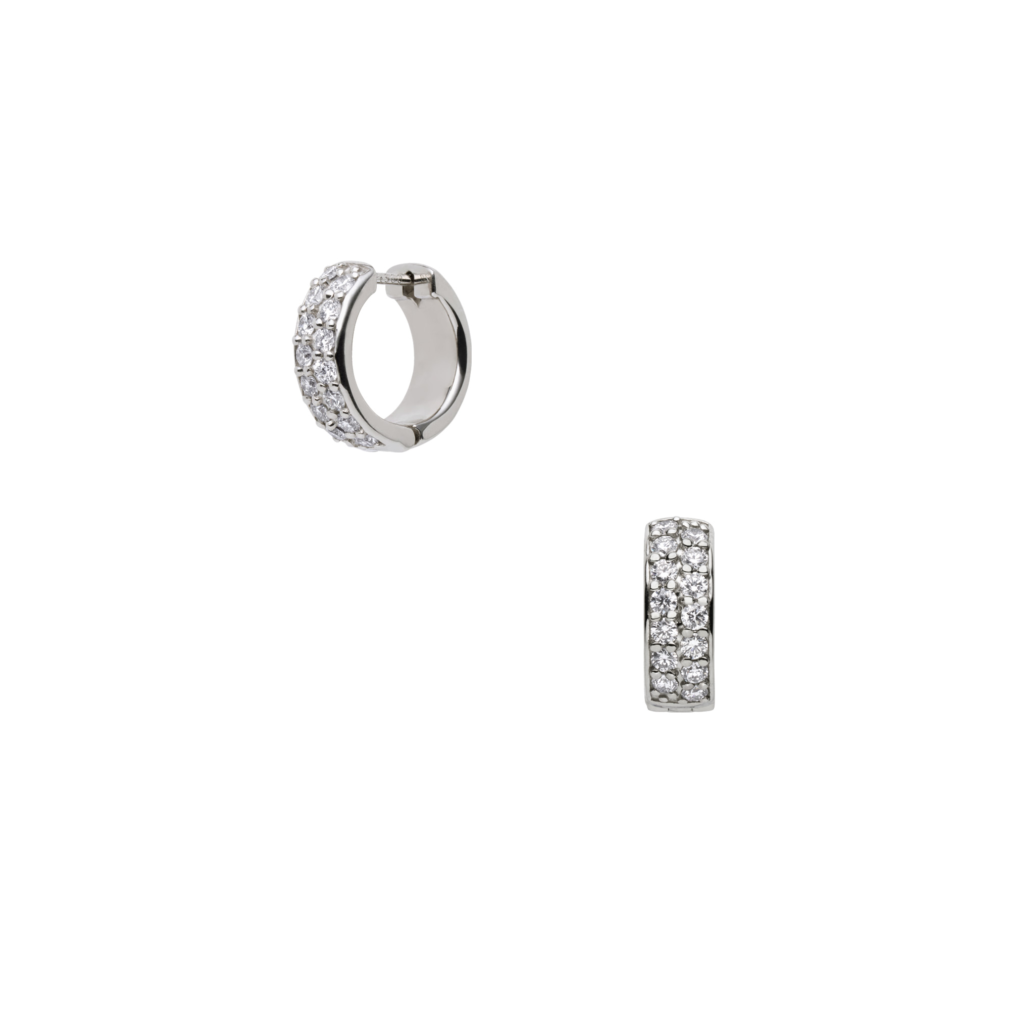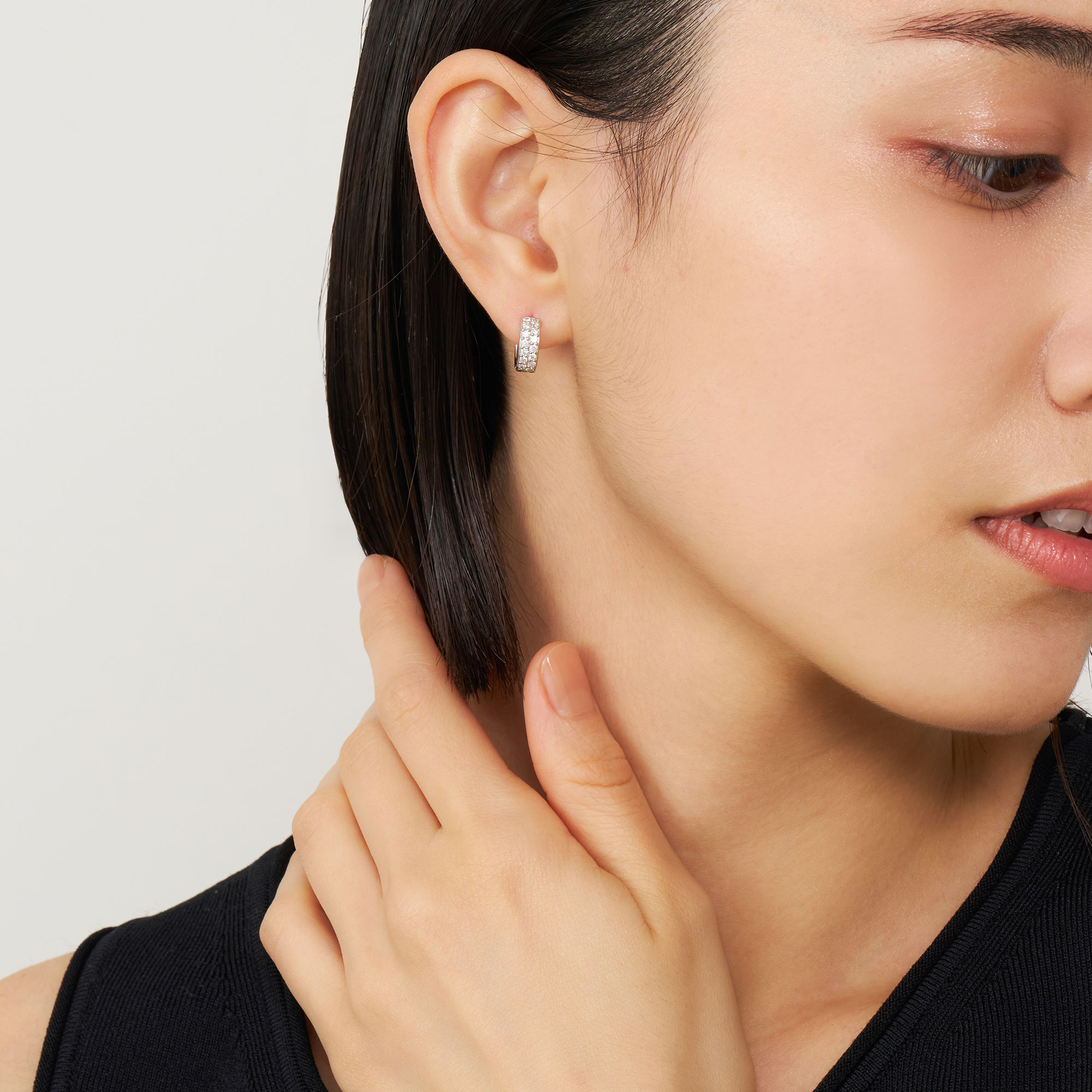 瑞々しく輝くダイヤモンドをプラチナのフープに贅沢に敷き詰めた存在感のある輝きが、顔まわりに明るさときらめきをもたらします。