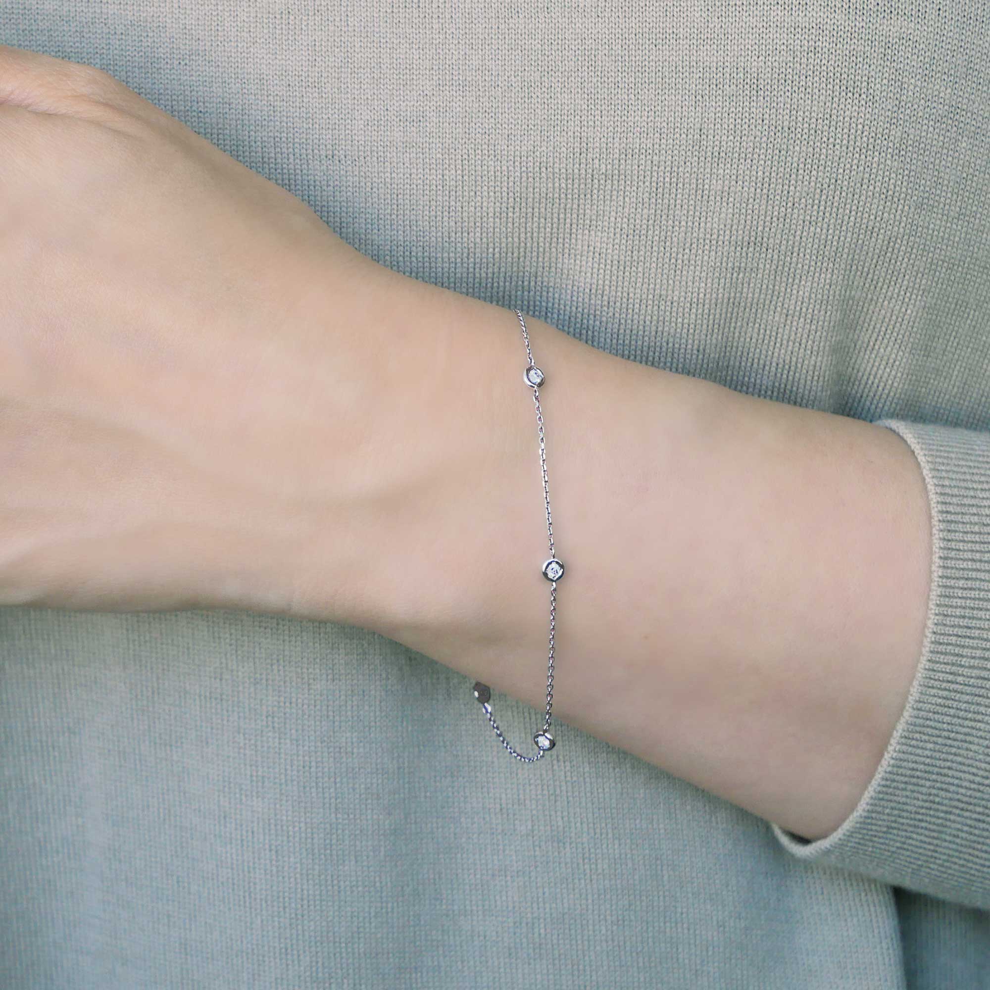 プラチナのチェーンにダイヤモンドをあしらった、ステーションタイプのブレスレット。