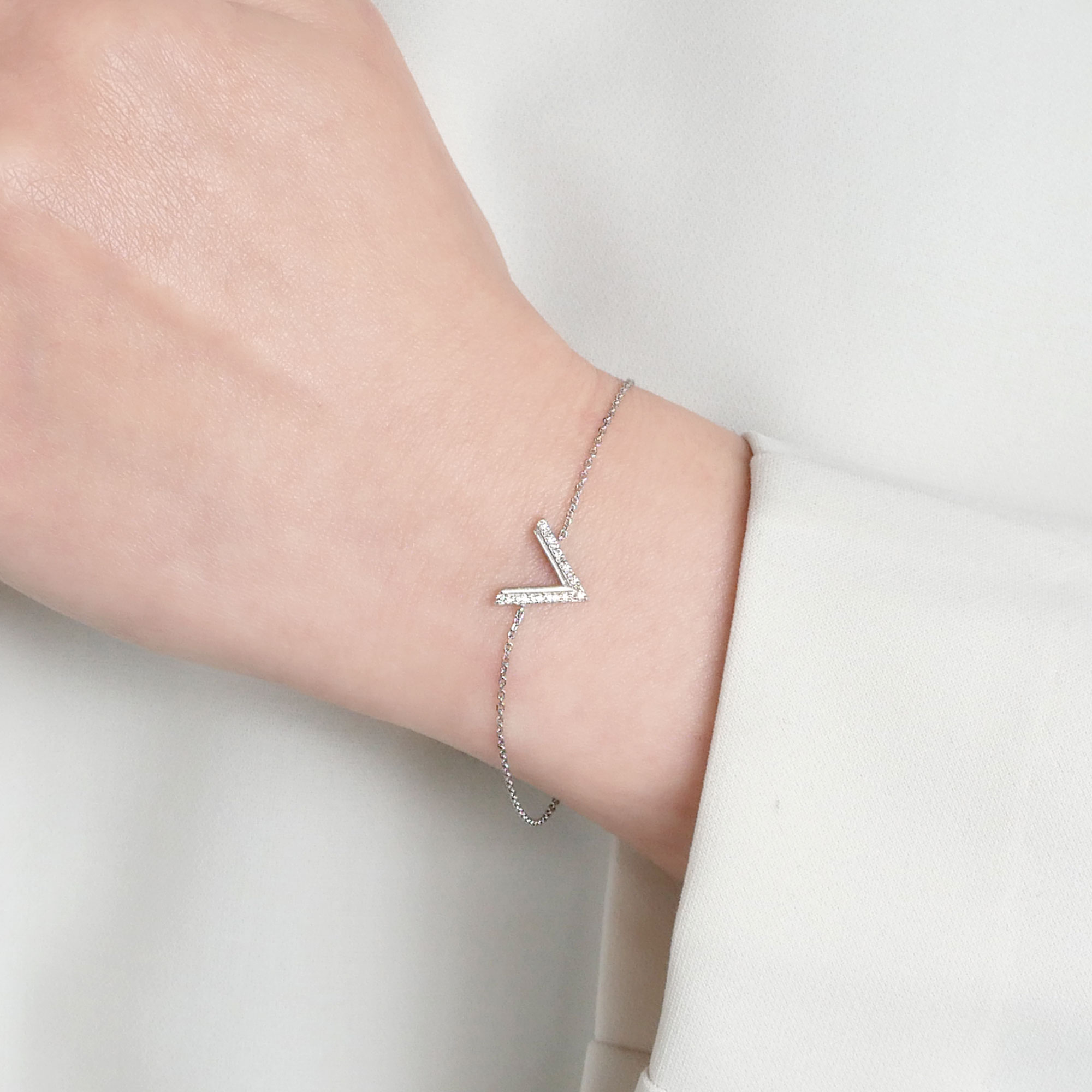 ダイヤモンドの煌めきとプラチナのストレートなラインが、モダンな雰囲気のブレスレット。