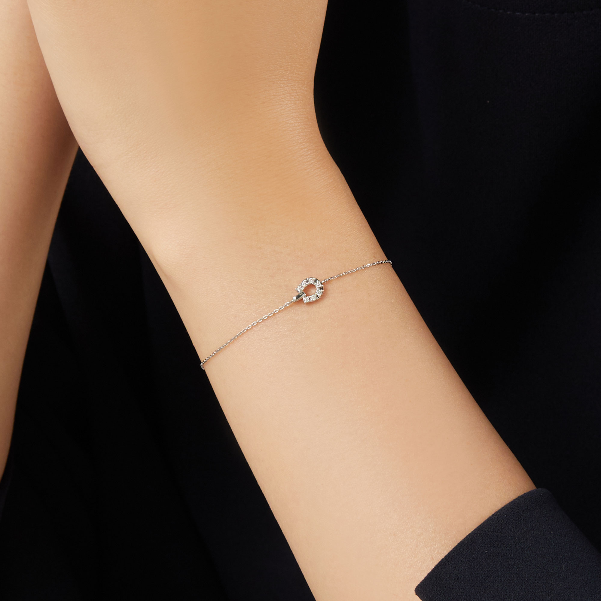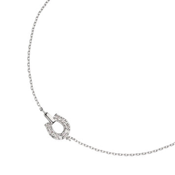 プラチナとダイヤモンドで象られた馬蹄モチーフが、甘すぎず洗練された光をたたえるブレスレット。