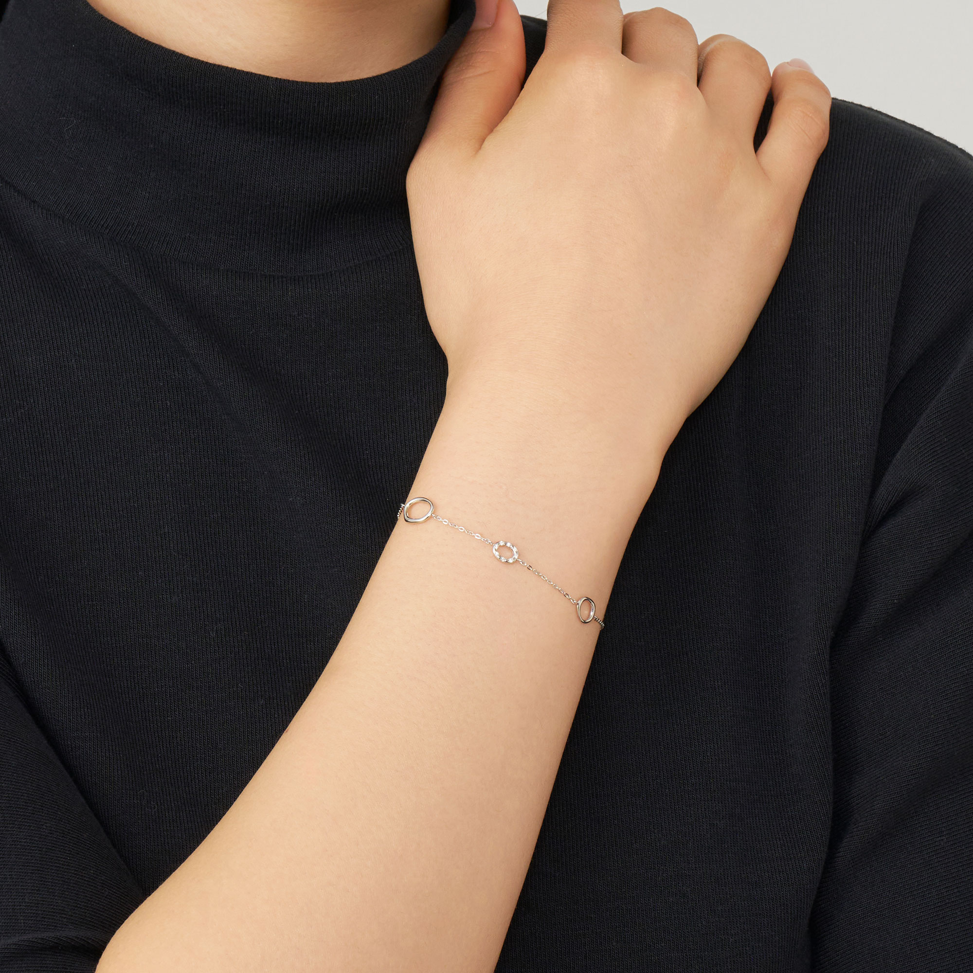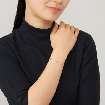 微風が揺らす水面のフォルムをプラチナとダイヤモンドで滑らかに描いたブレスレット。