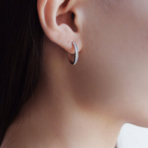 瑞々しいダイヤモンドが煌めく、モダンなオーバルのイヤリング。