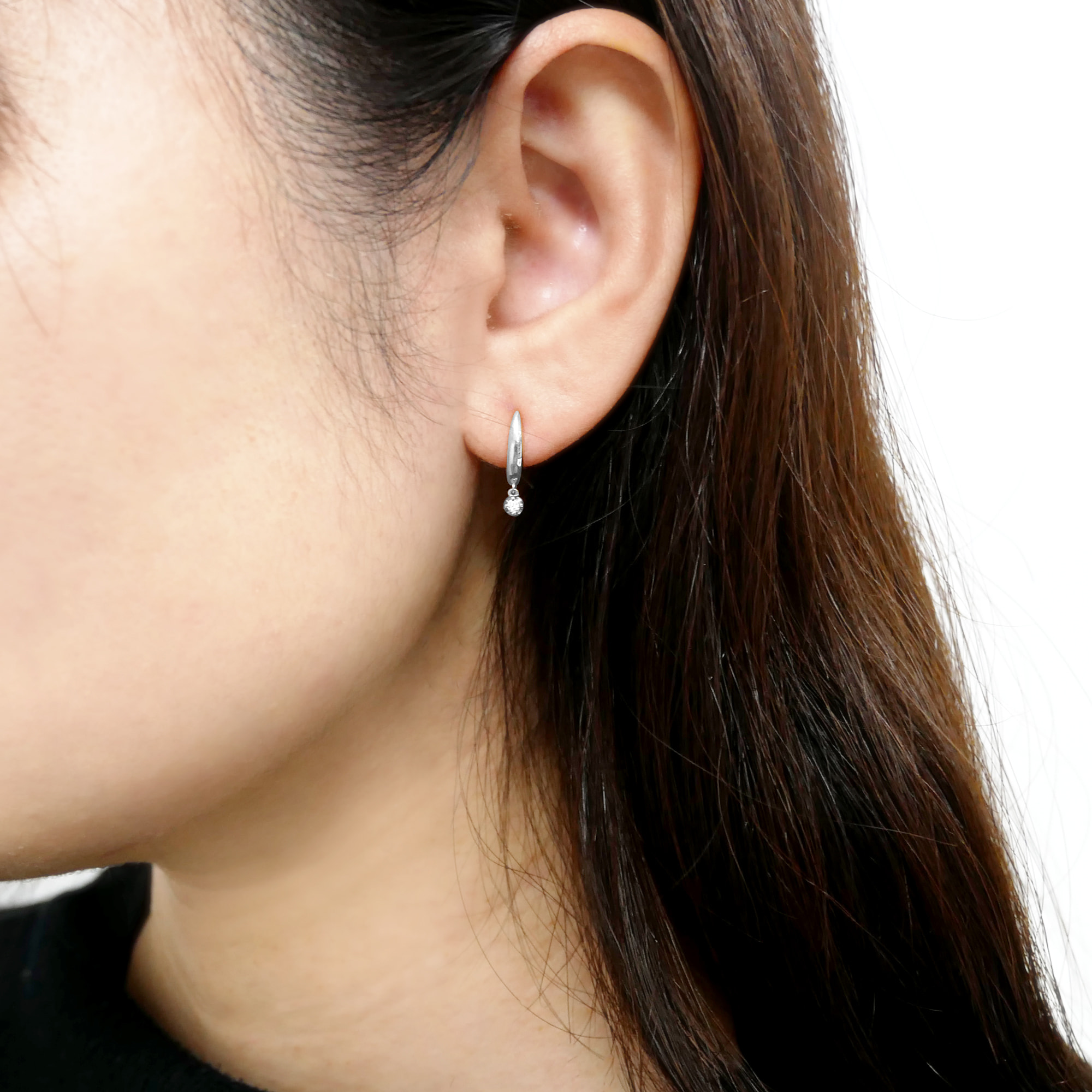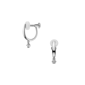 つややかなプラチナにダイヤモンドが揺れるベーシックなイヤリング。