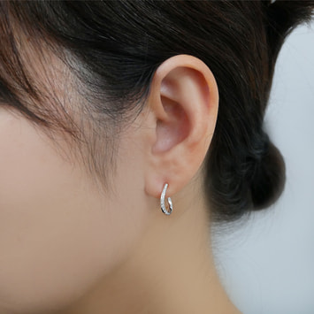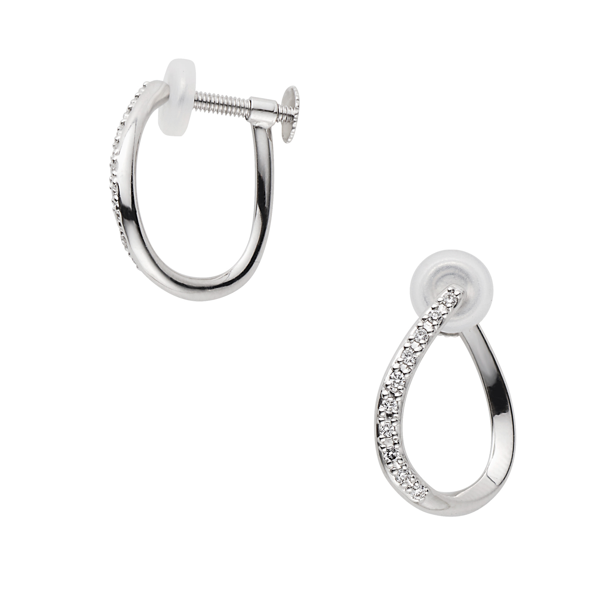 瑞々しいダイヤモンドが煌めく立体的なシルエットのイヤリング。