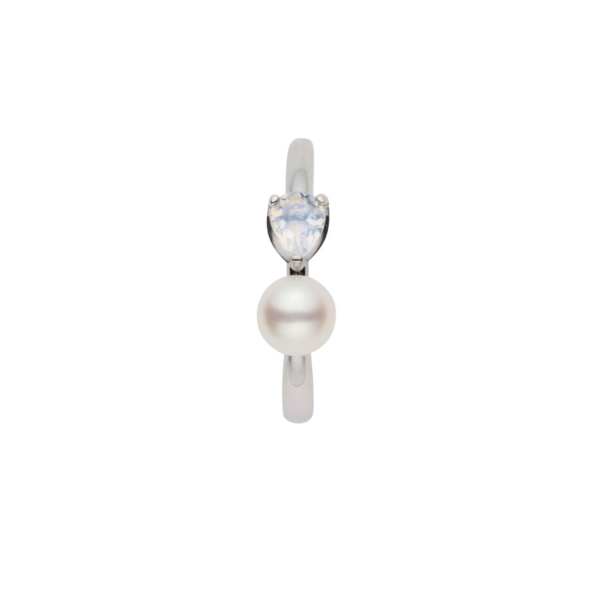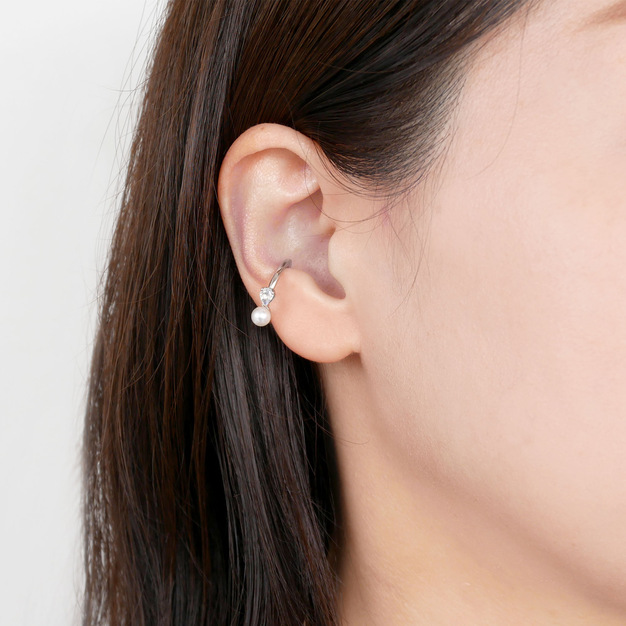 アコヤパールとフェルスパーが寄り添うイヤーカフ。