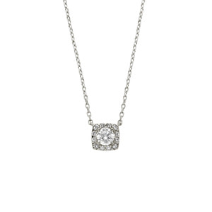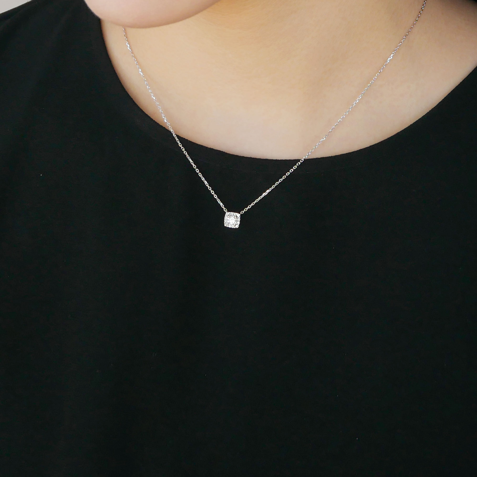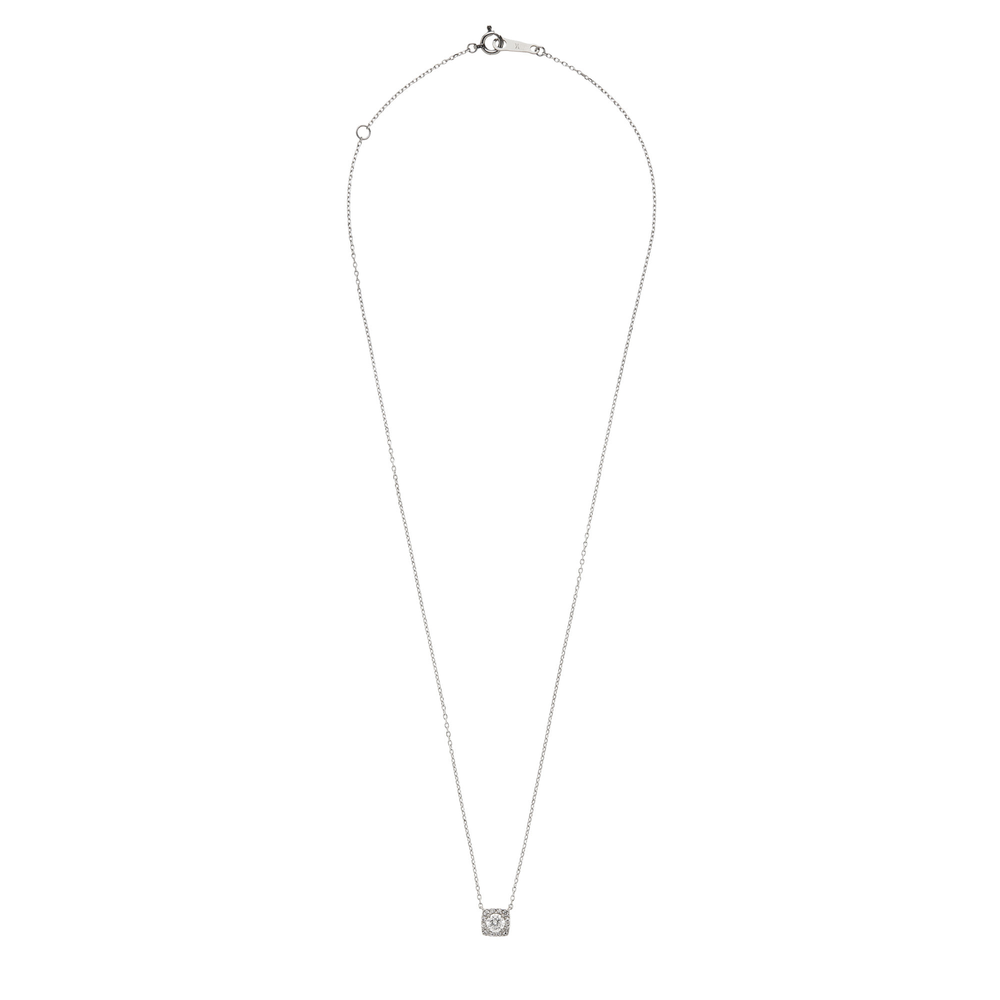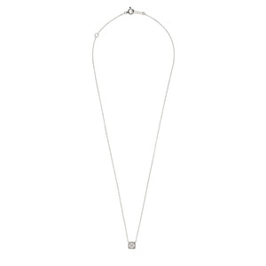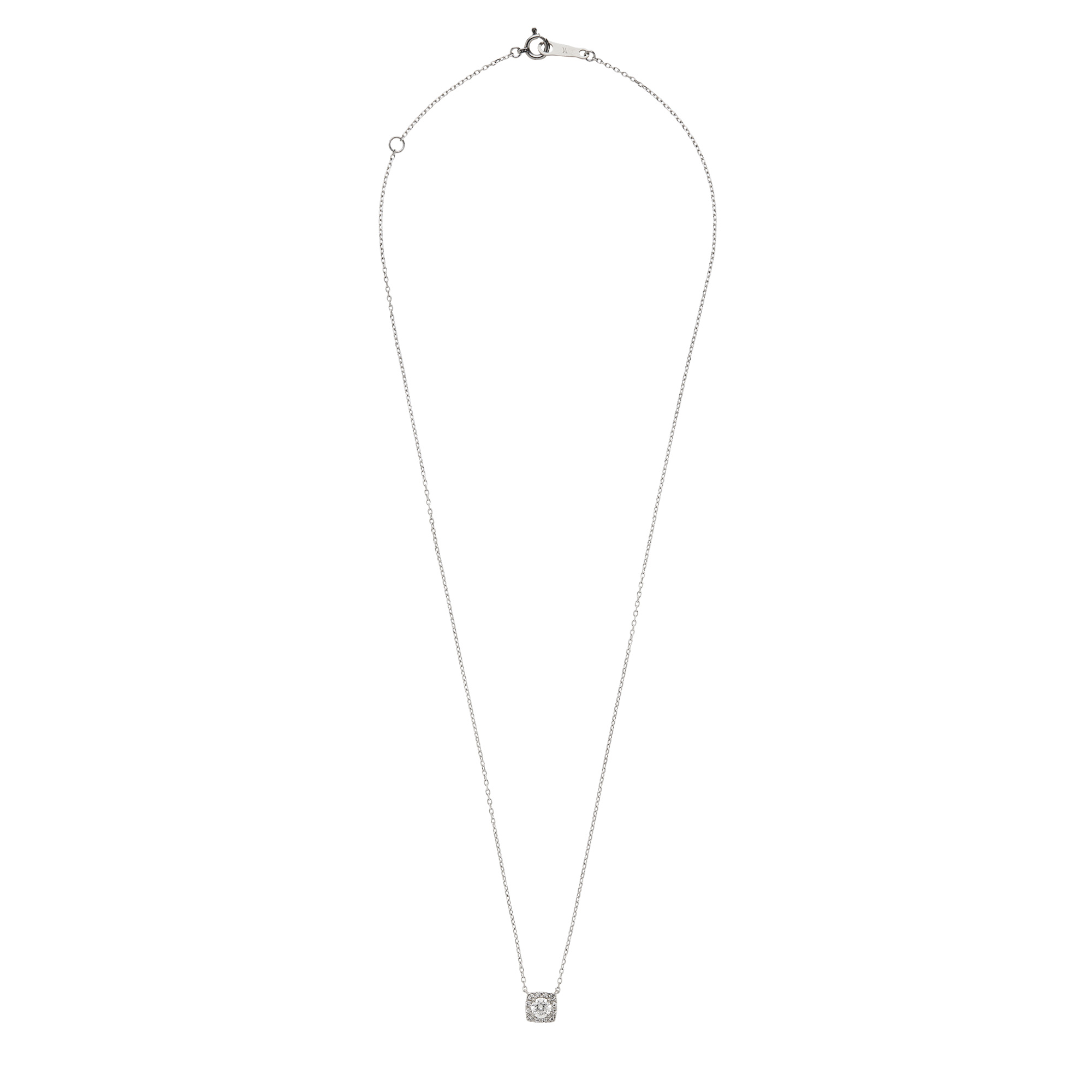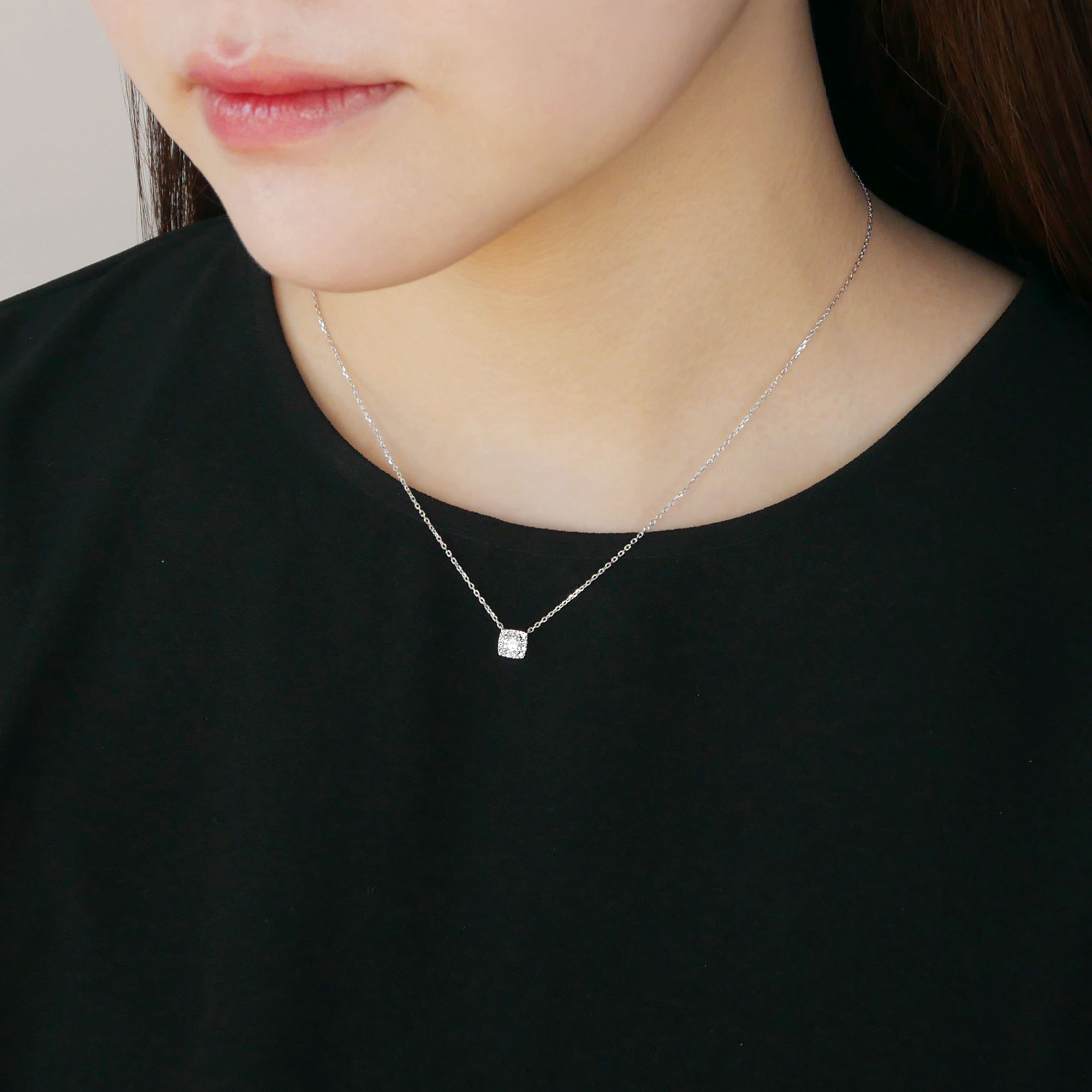 柔らかなスクエアフォルムの中にダイヤモンドのきらめきをぎゅっと閉じ込めた、強い輝きが魅力のネックレス。