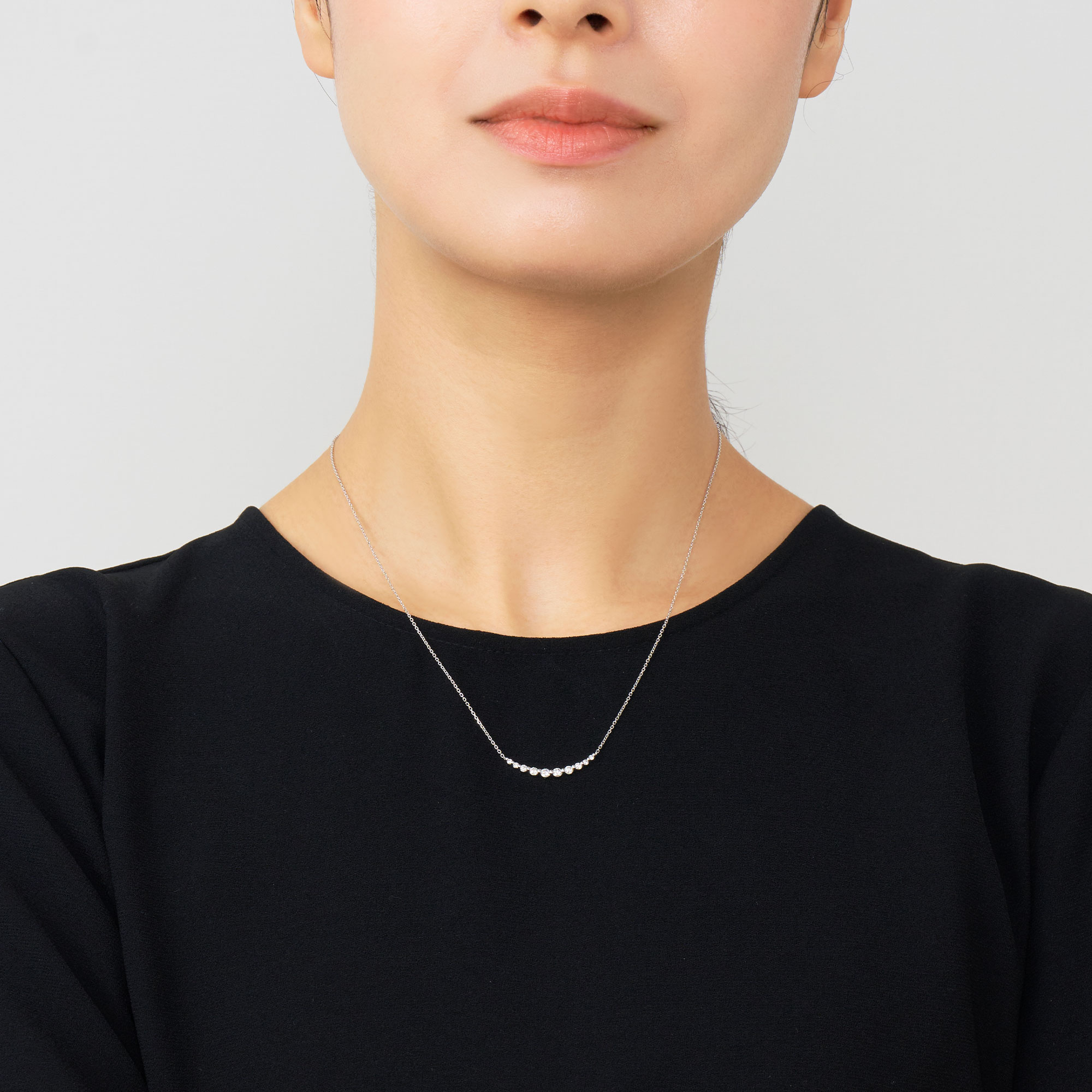 緩やかなU字を描くように、ダイヤモンドのナチュラルな輝きが際立つ人気のエレガントなネックレス。