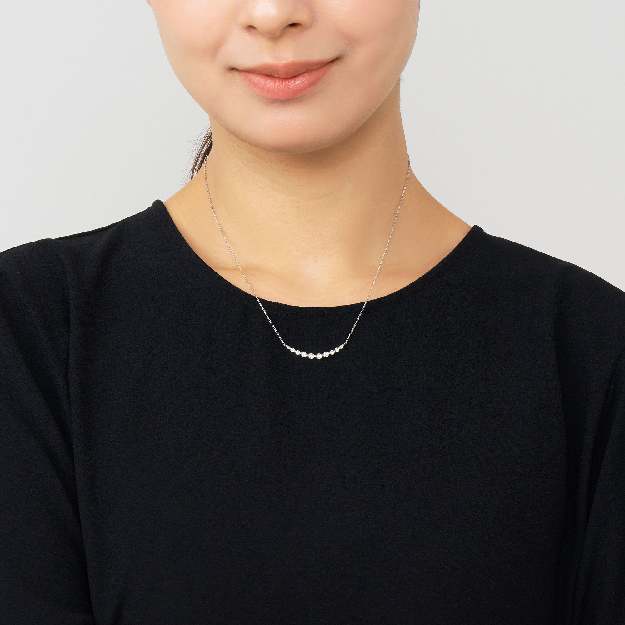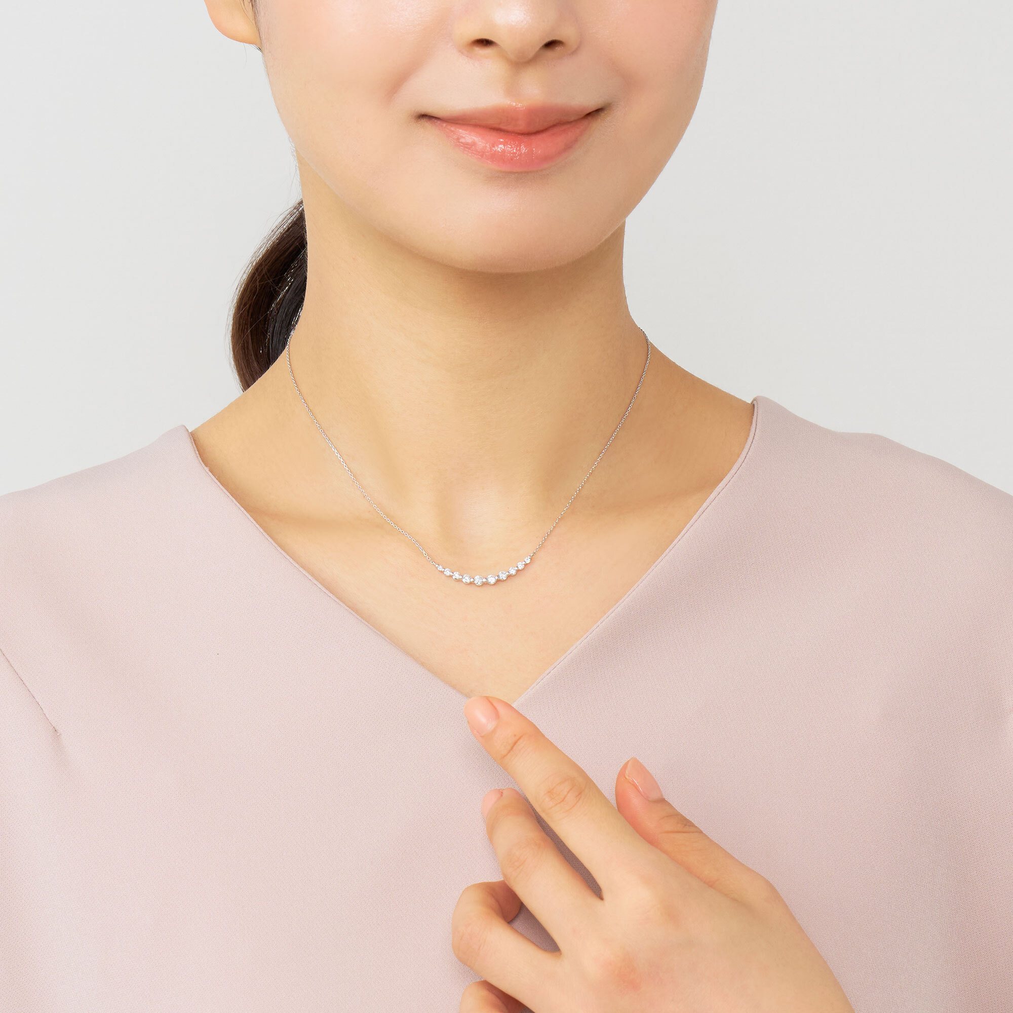 緩やかなU字を描くように、ダイヤモンドのナチュラルな輝きが際立つ 人気のエレガントなネックレス。