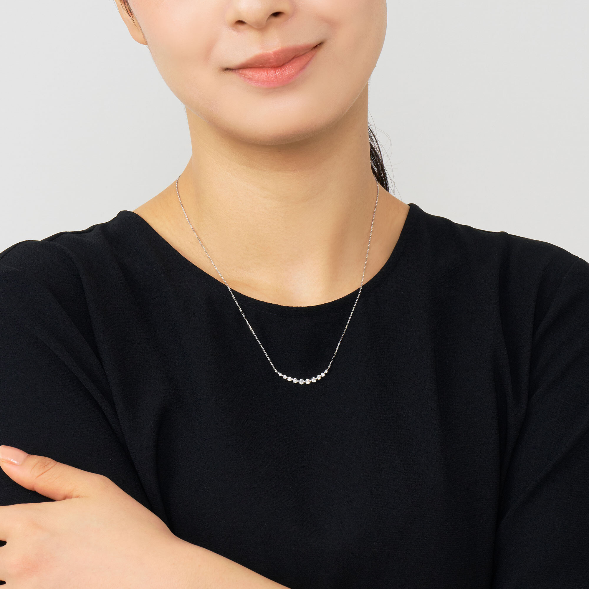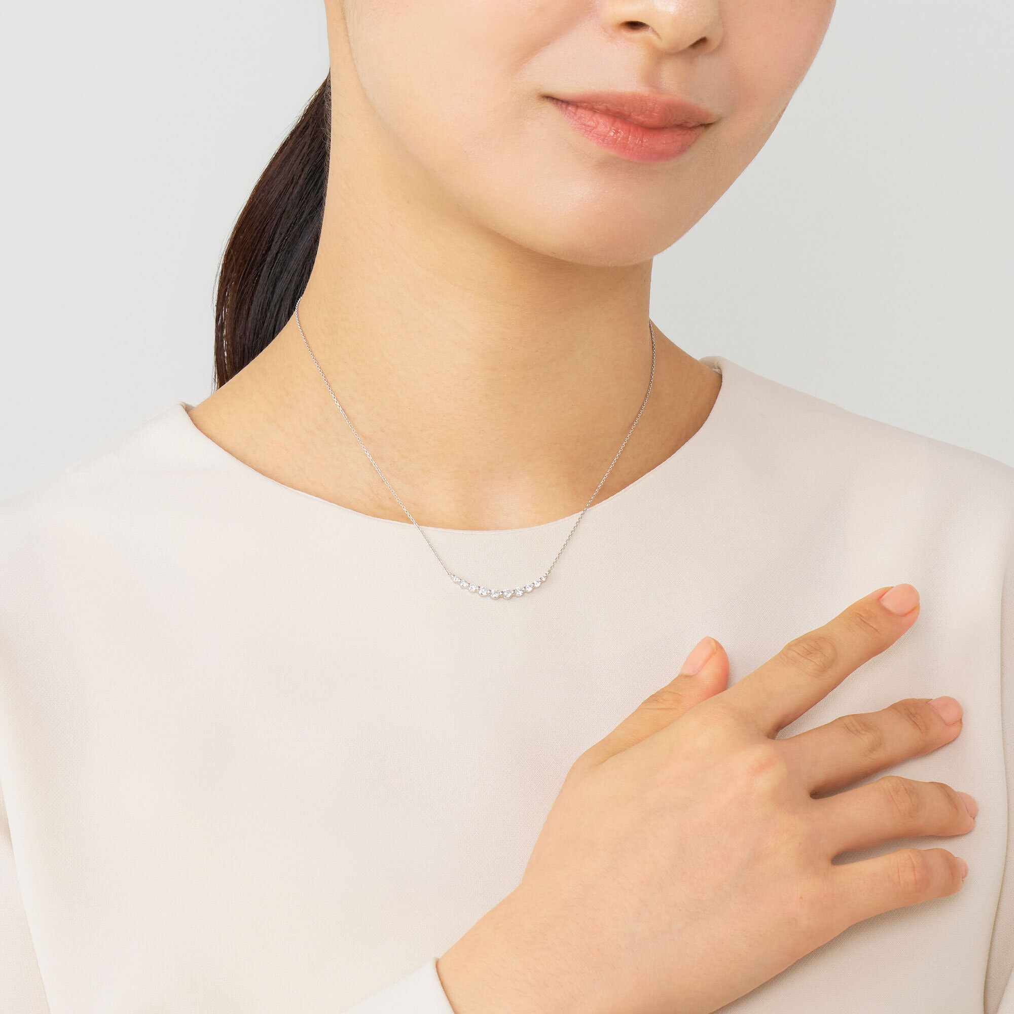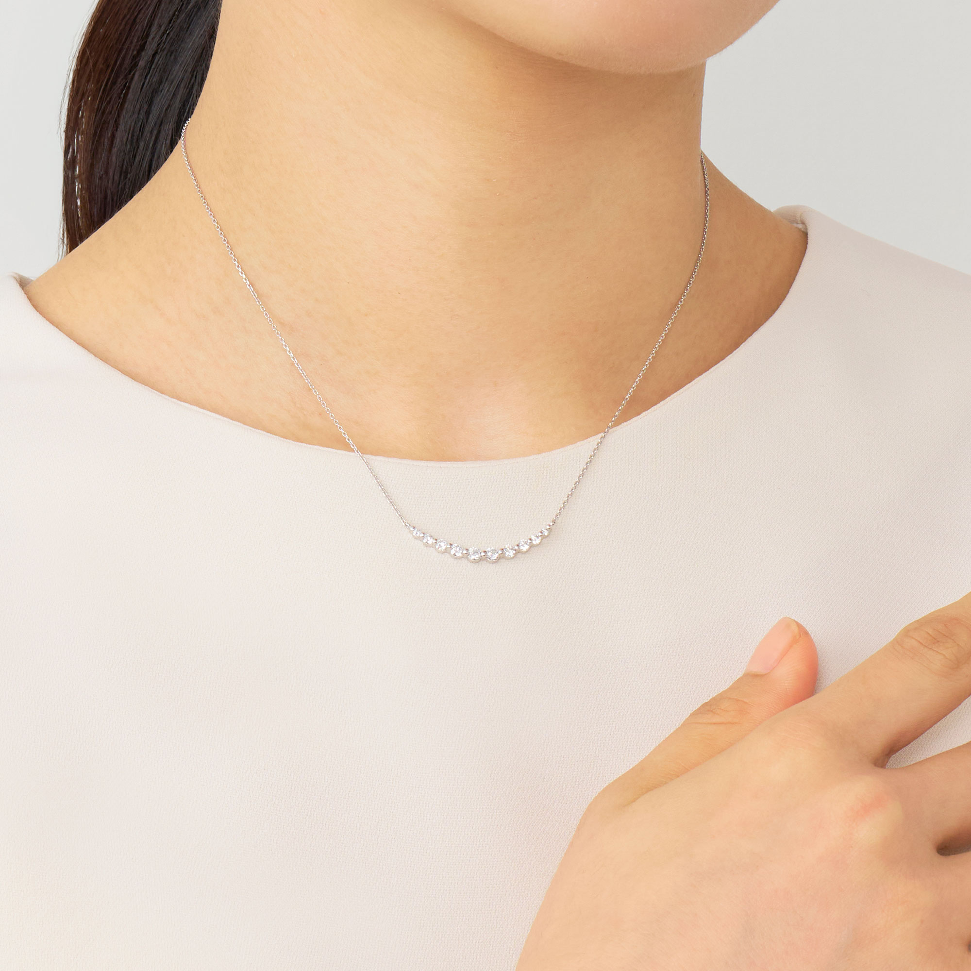 緩やかなU字を描くように、ダイヤモンドのナチュラルな輝きが際立つ人気のエレガントなネックレス。