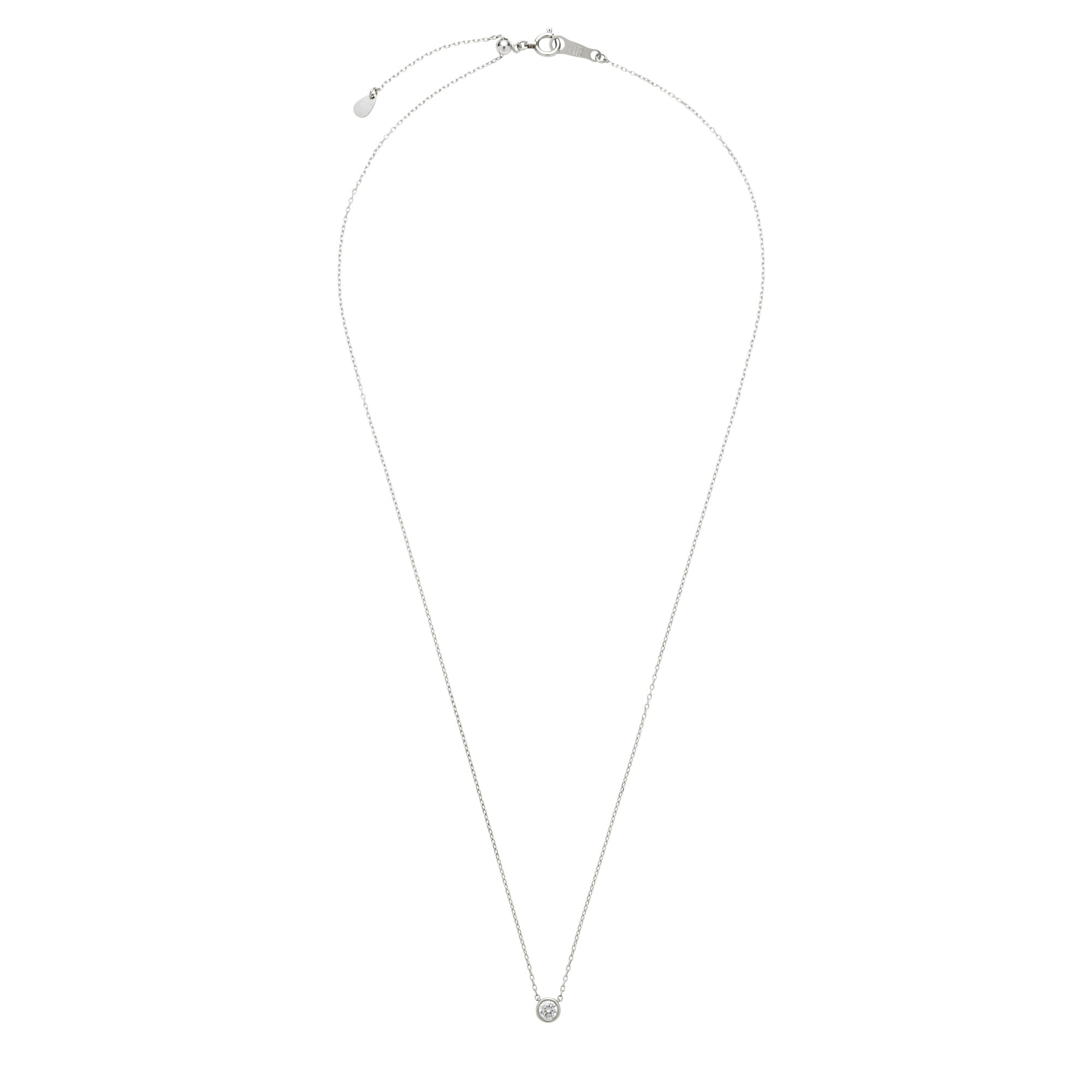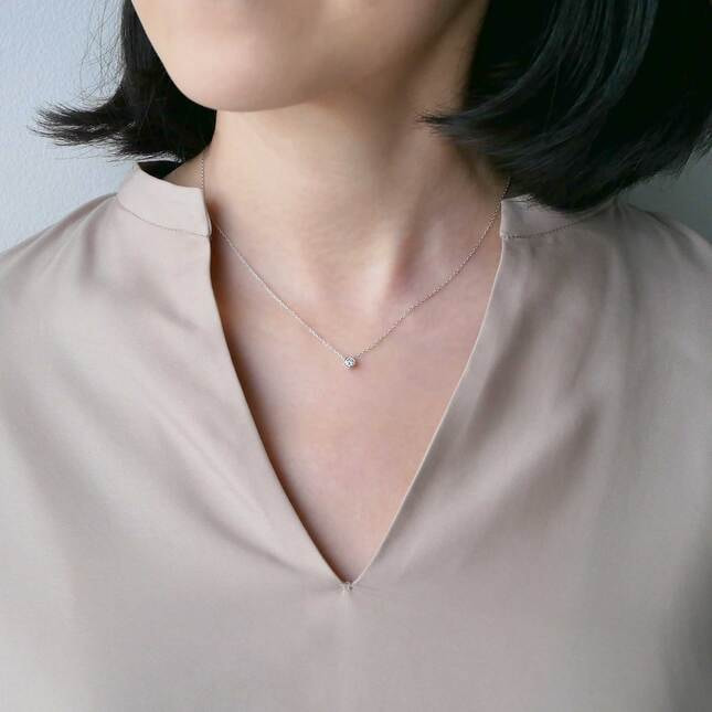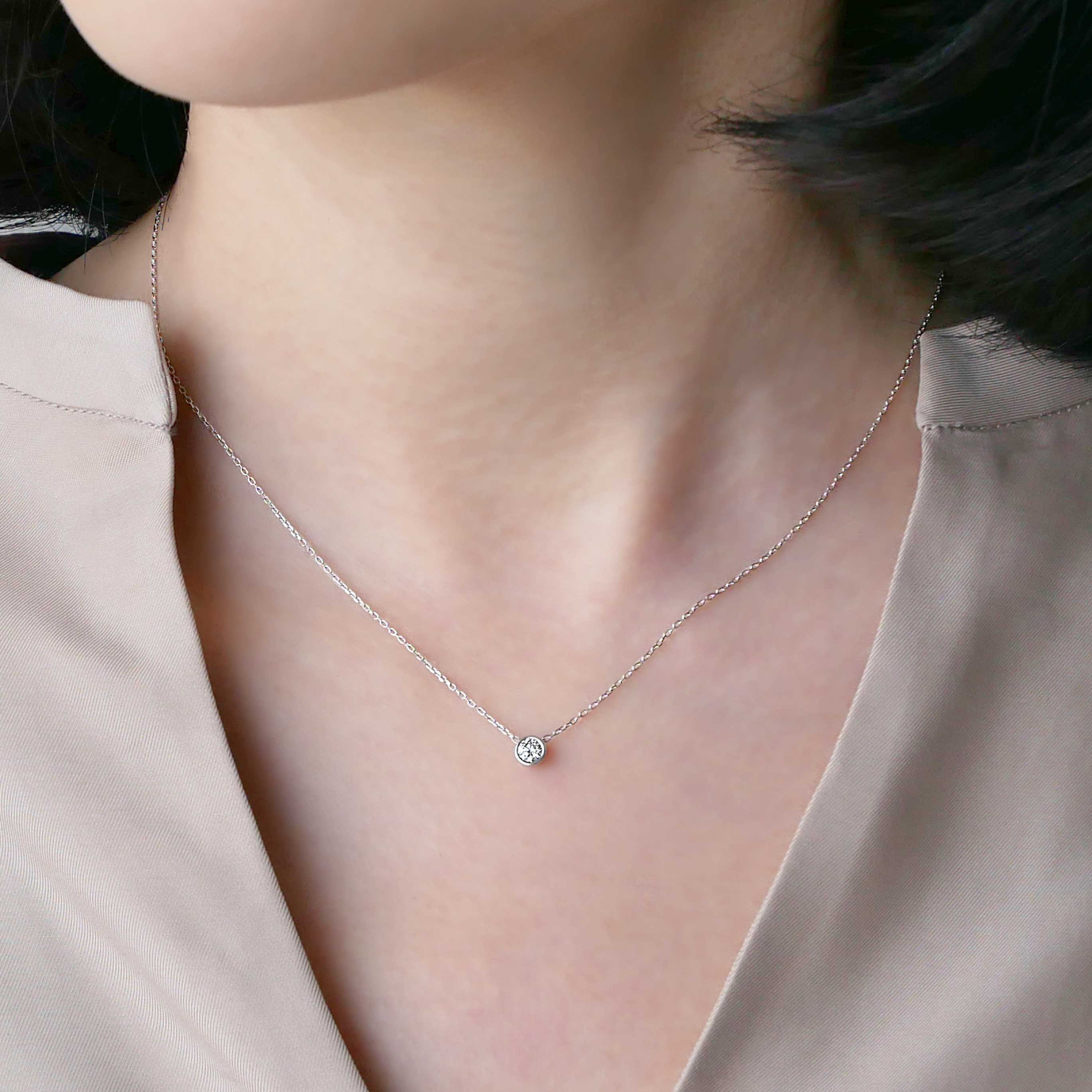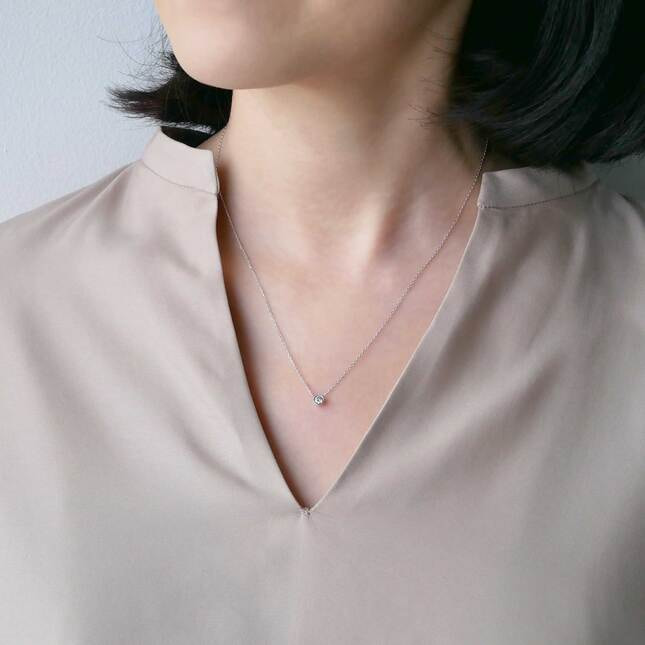 スライド式チェーンは全長43cmまで調節可能、大きすぎず小さすぎない0.15ctサイズは一本使いでも重ね着けでも楽しめます。