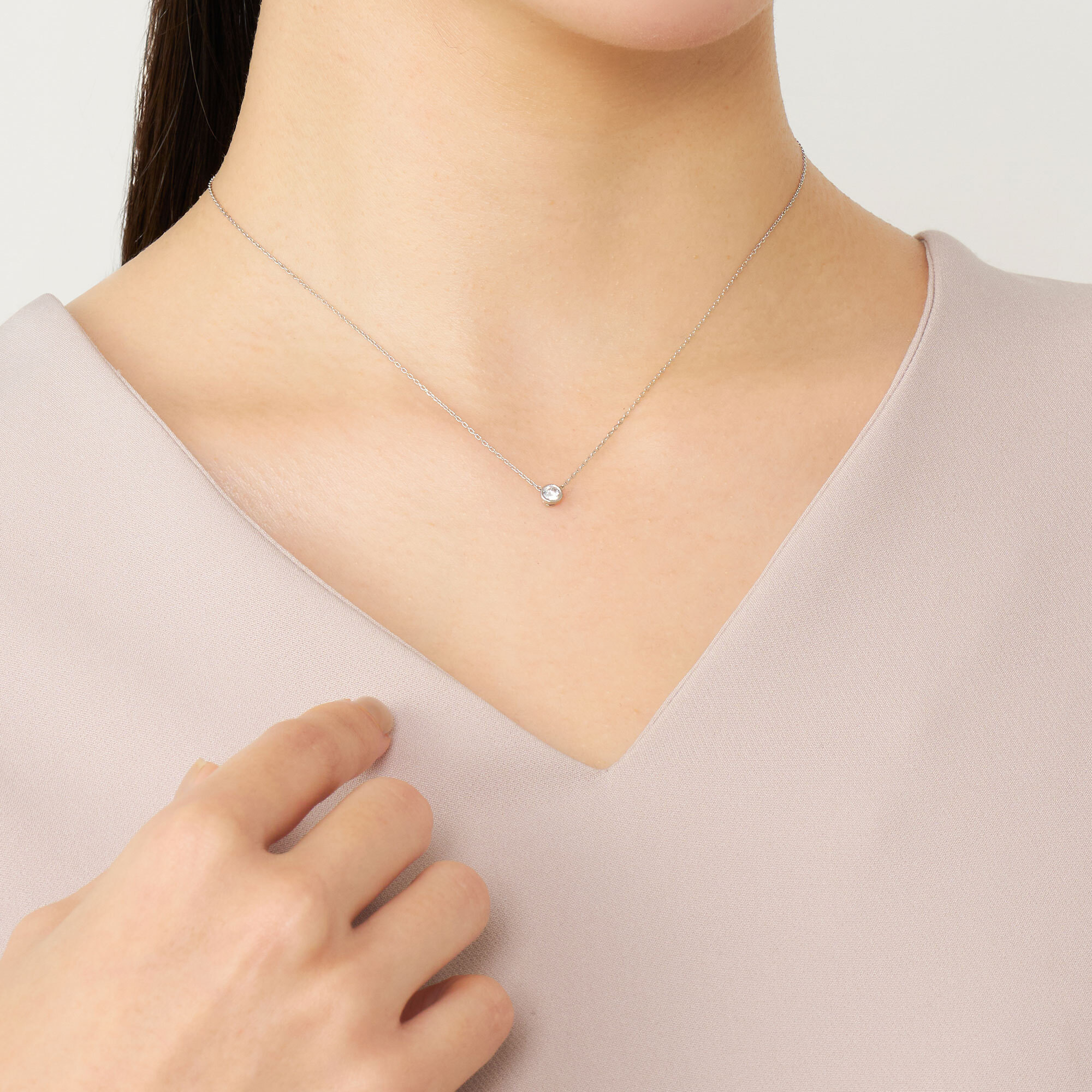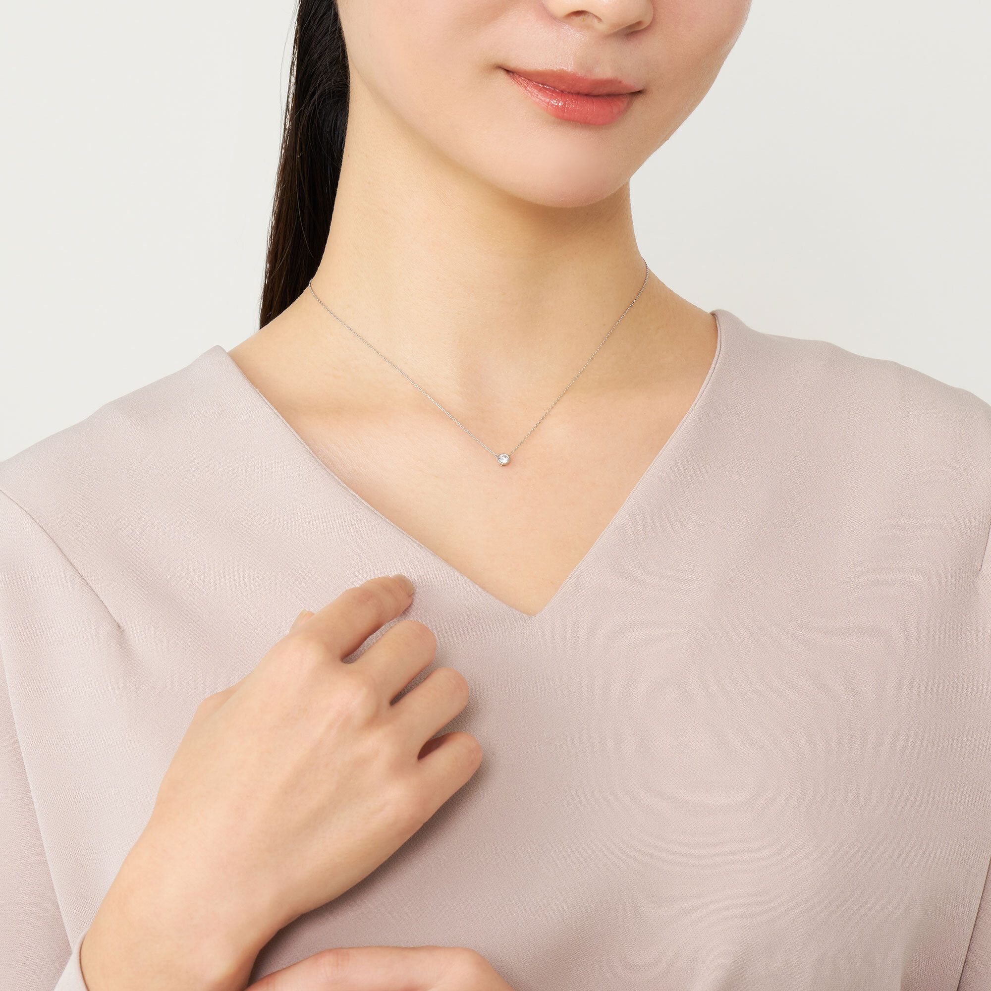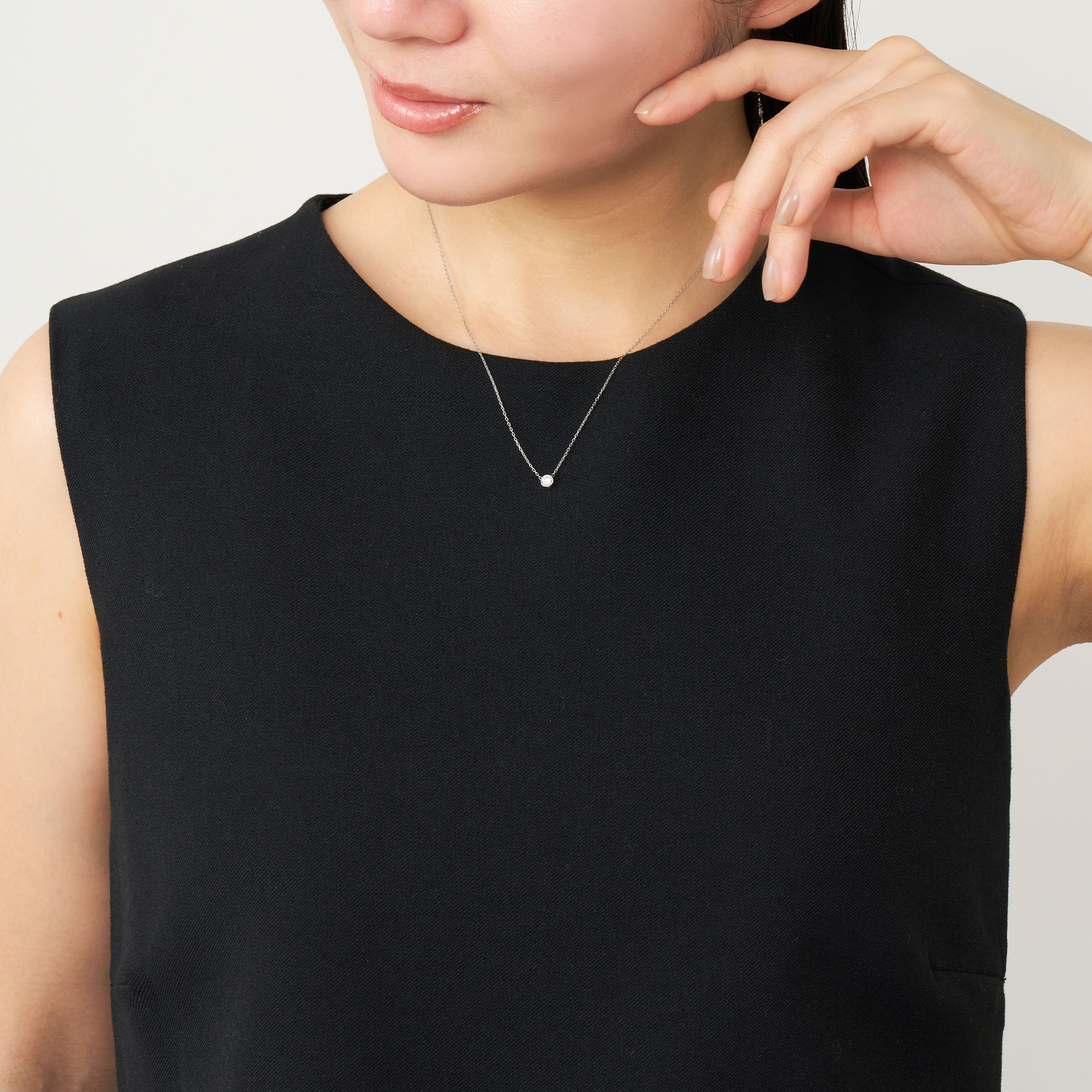 スライド式チェーンは全長43cmまで調節可能、大きすぎず小さすぎない0.15ctサイズは一本使いでも重ね着けでも楽しめます。