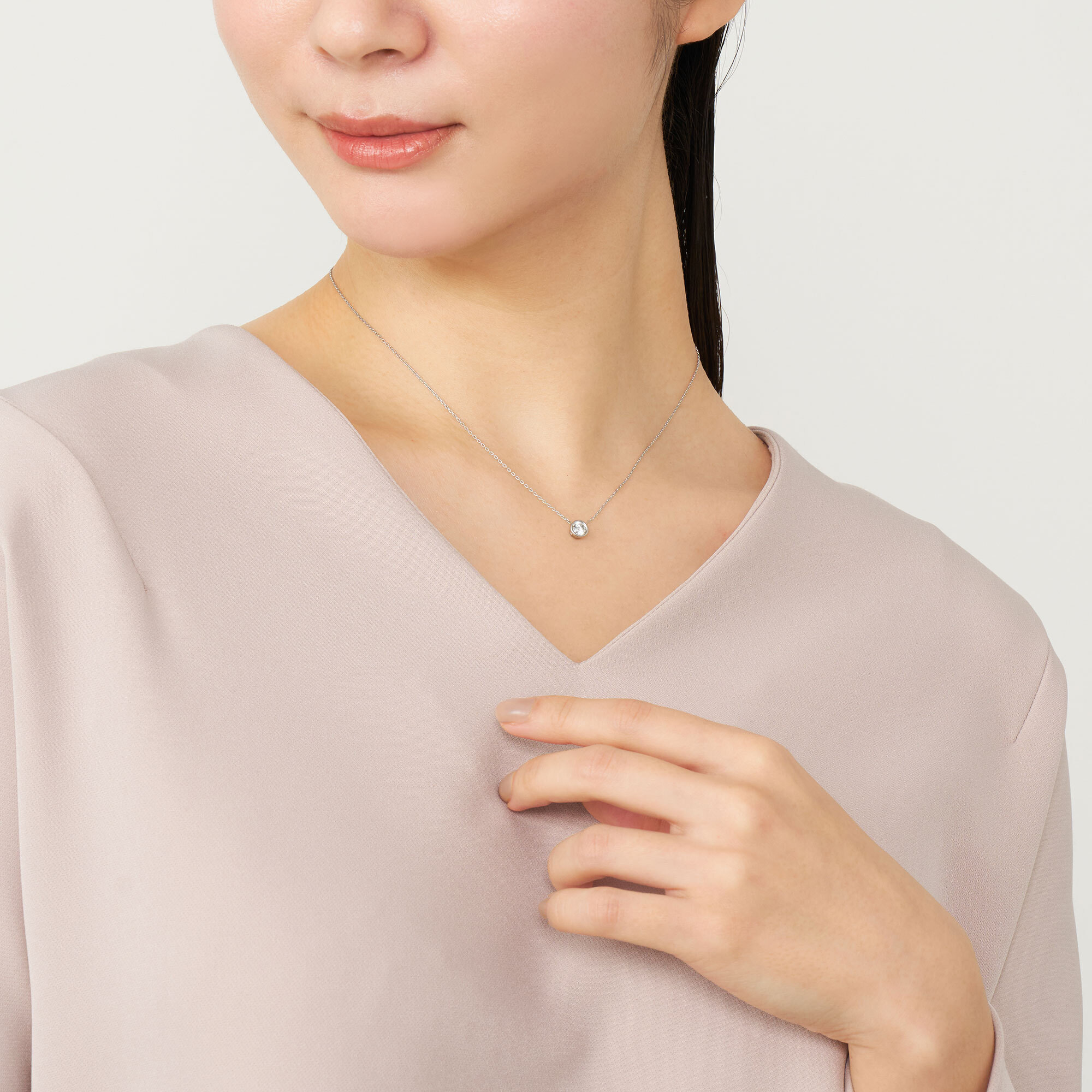 存在感ある0.35ctサイズを、全長43cmまで調節可能なスライドアジャスターチェーンでさまざまなコーディネートに取り入れてお楽しみいただけます。