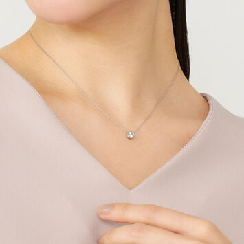 艶やかなプラチナの縁取りで包まれた、エクセレントカットダイヤモンドの最上級の輝きが楽しめるソリテールネックレス。