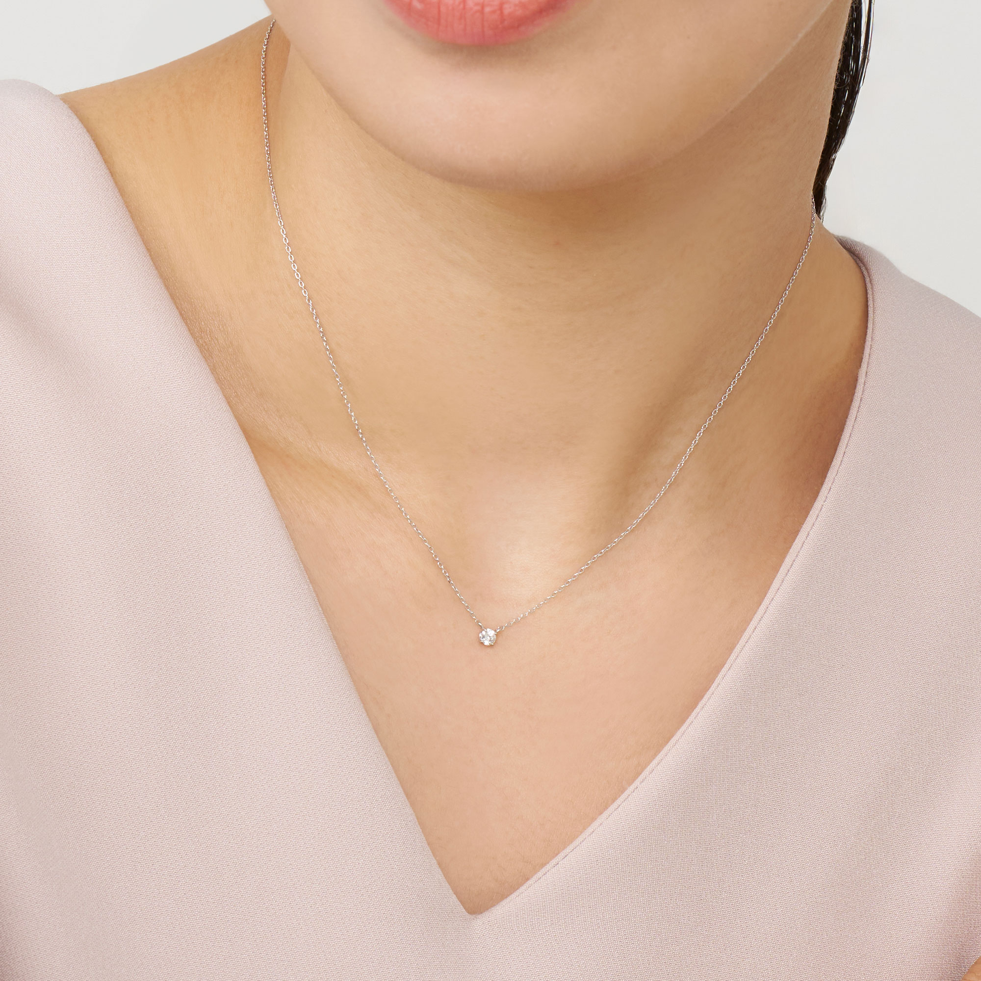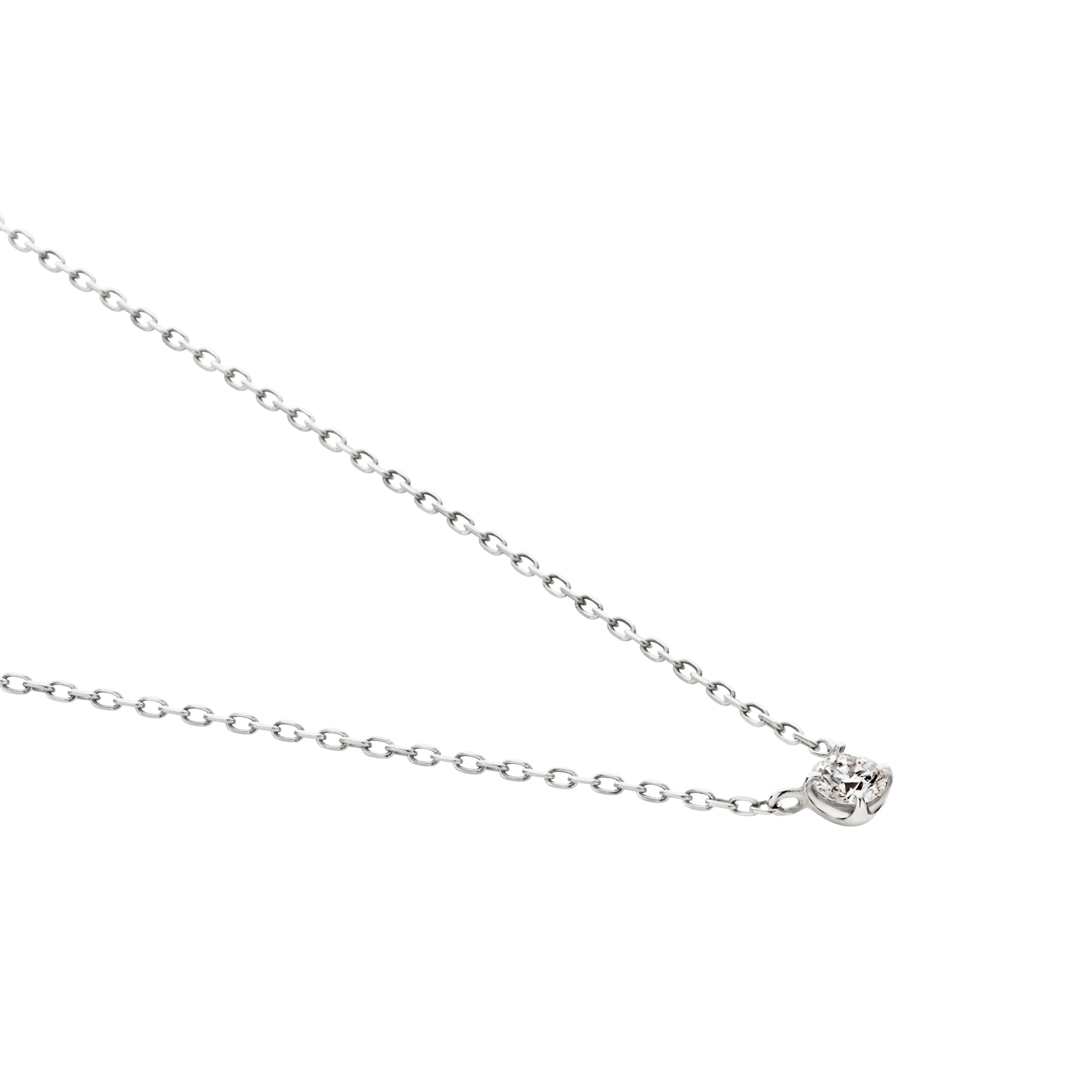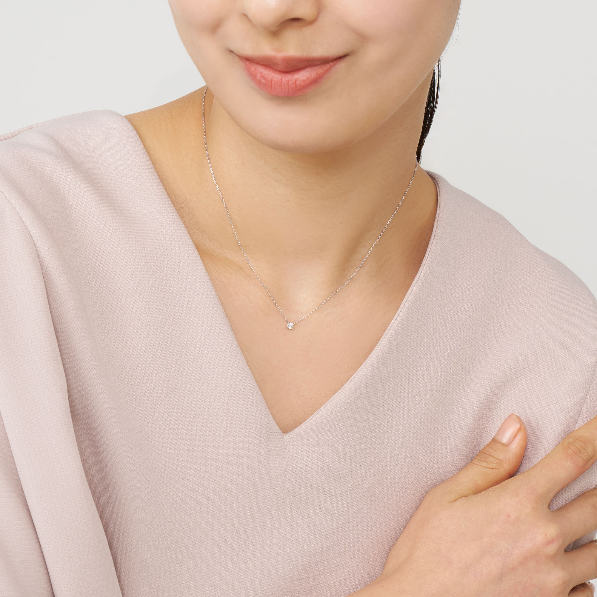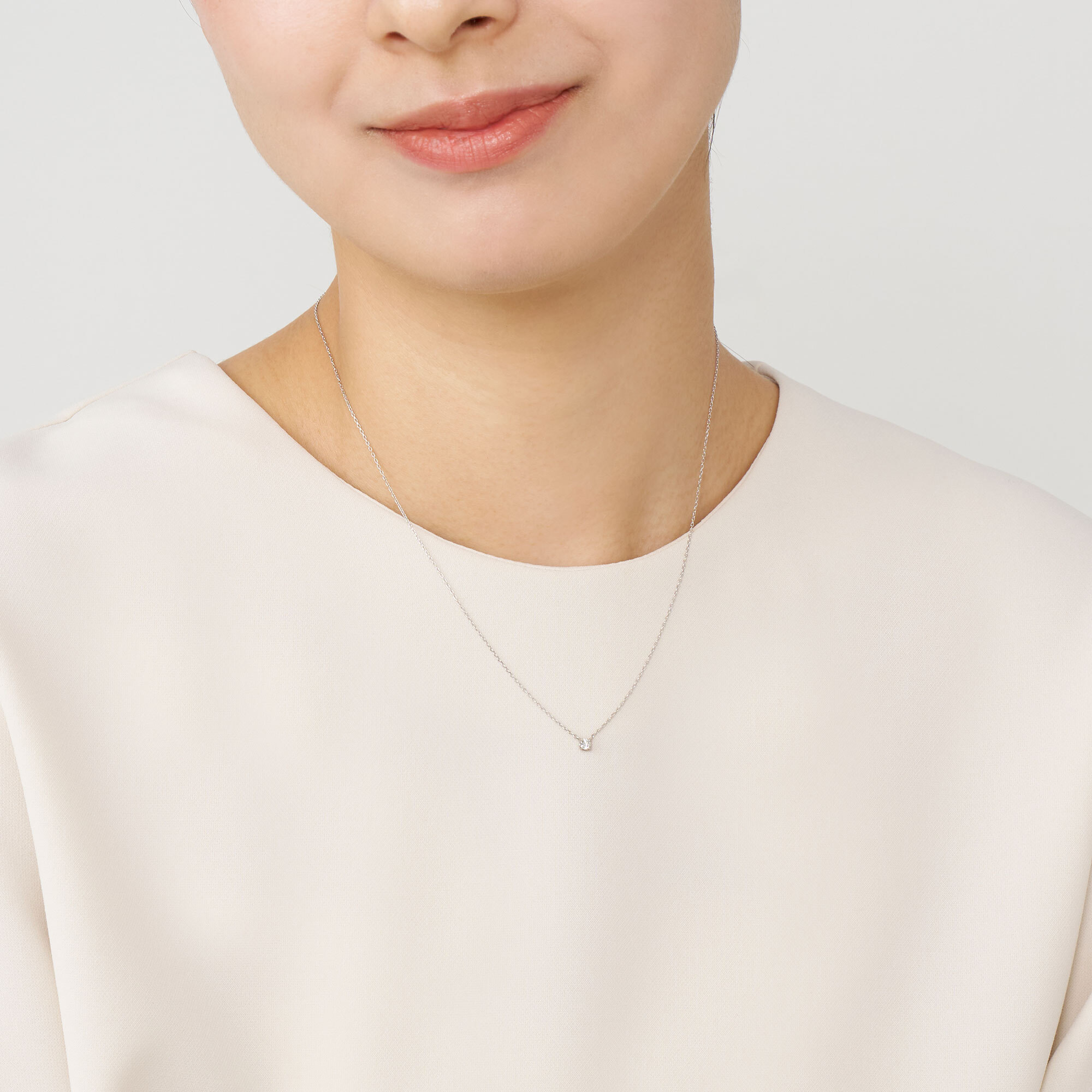 チェーンはダイヤモンドだけが胸元に可憐に浮かび上がる、華奢で控えめなアズキチェーンを使用。