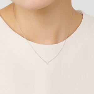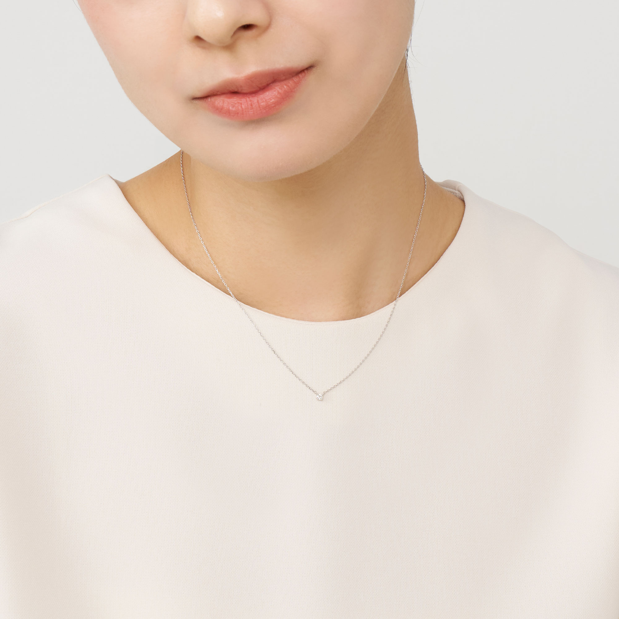 チェーンはダイヤモンドだけが胸元に可憐に浮かび上がる、華奢で控えめなアズキチェーンを使用。